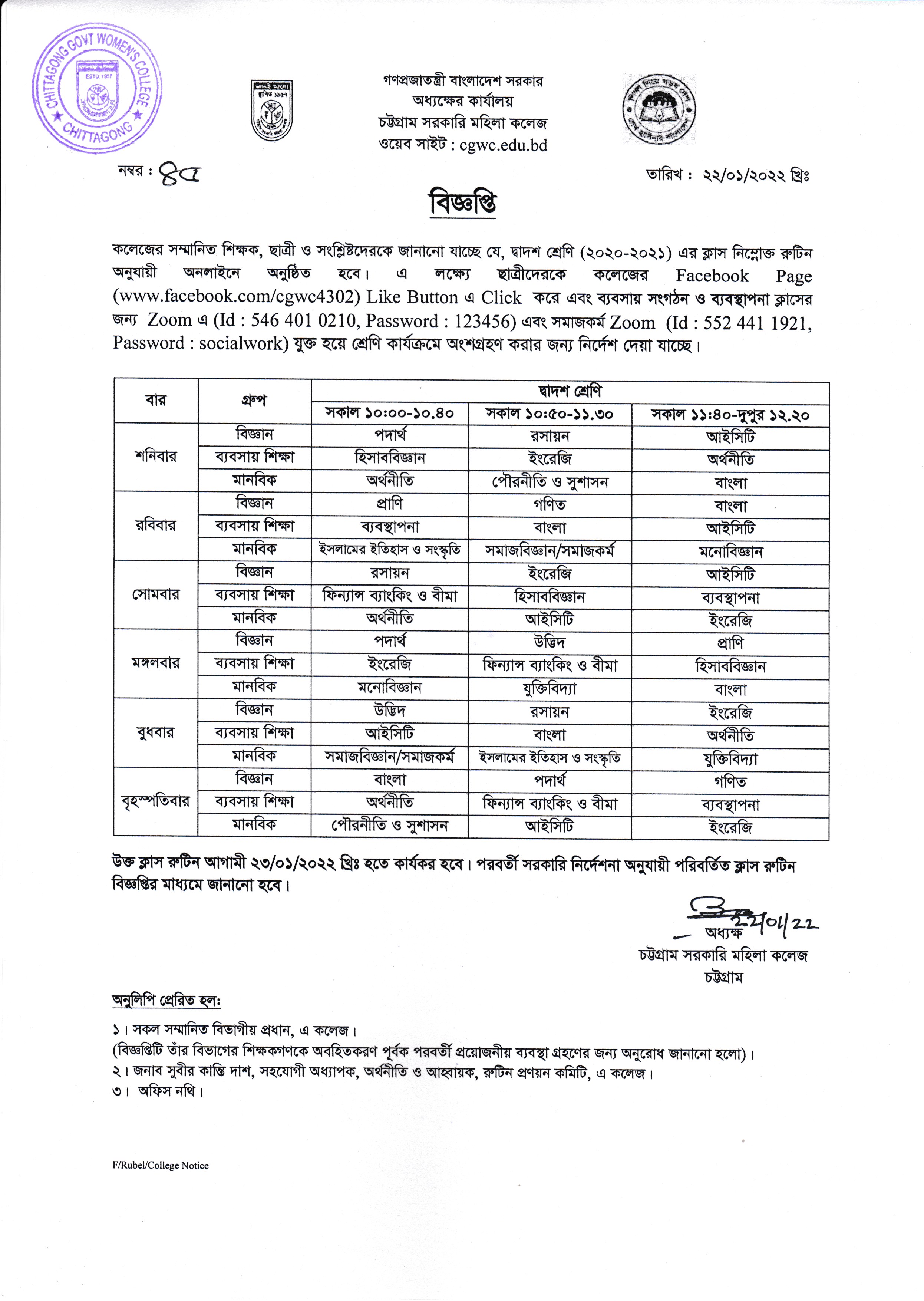 ডিগ্রী (পাস) ১ম ও ৩য় বর্ষের ক্লাস রুটিন প্রকাশ (১৮/০১/২০২২)