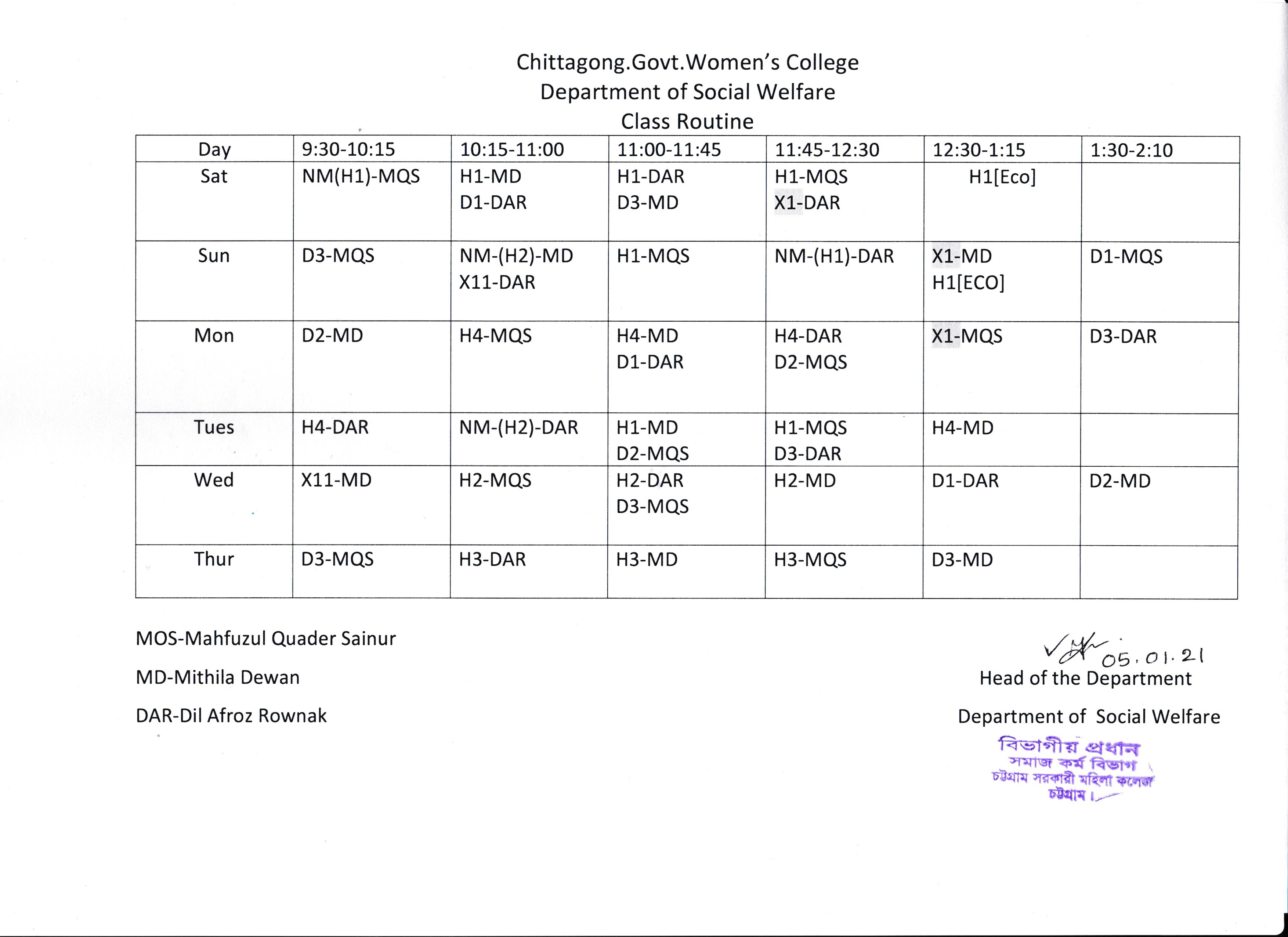 সমাজকর্ম বিভাগের ক্লাস রুটিন প্রকাশ : ০৫/০১/২০২২)