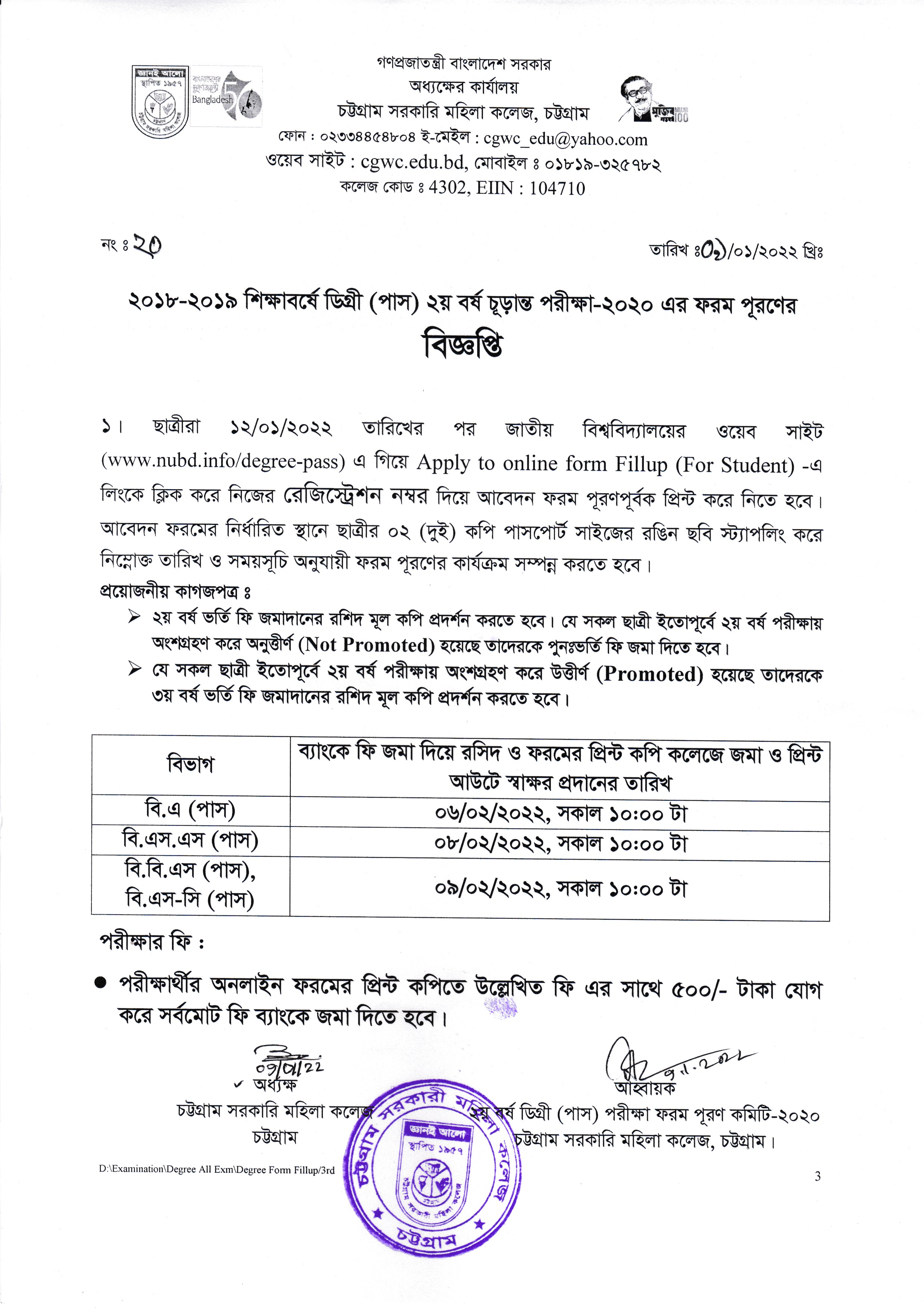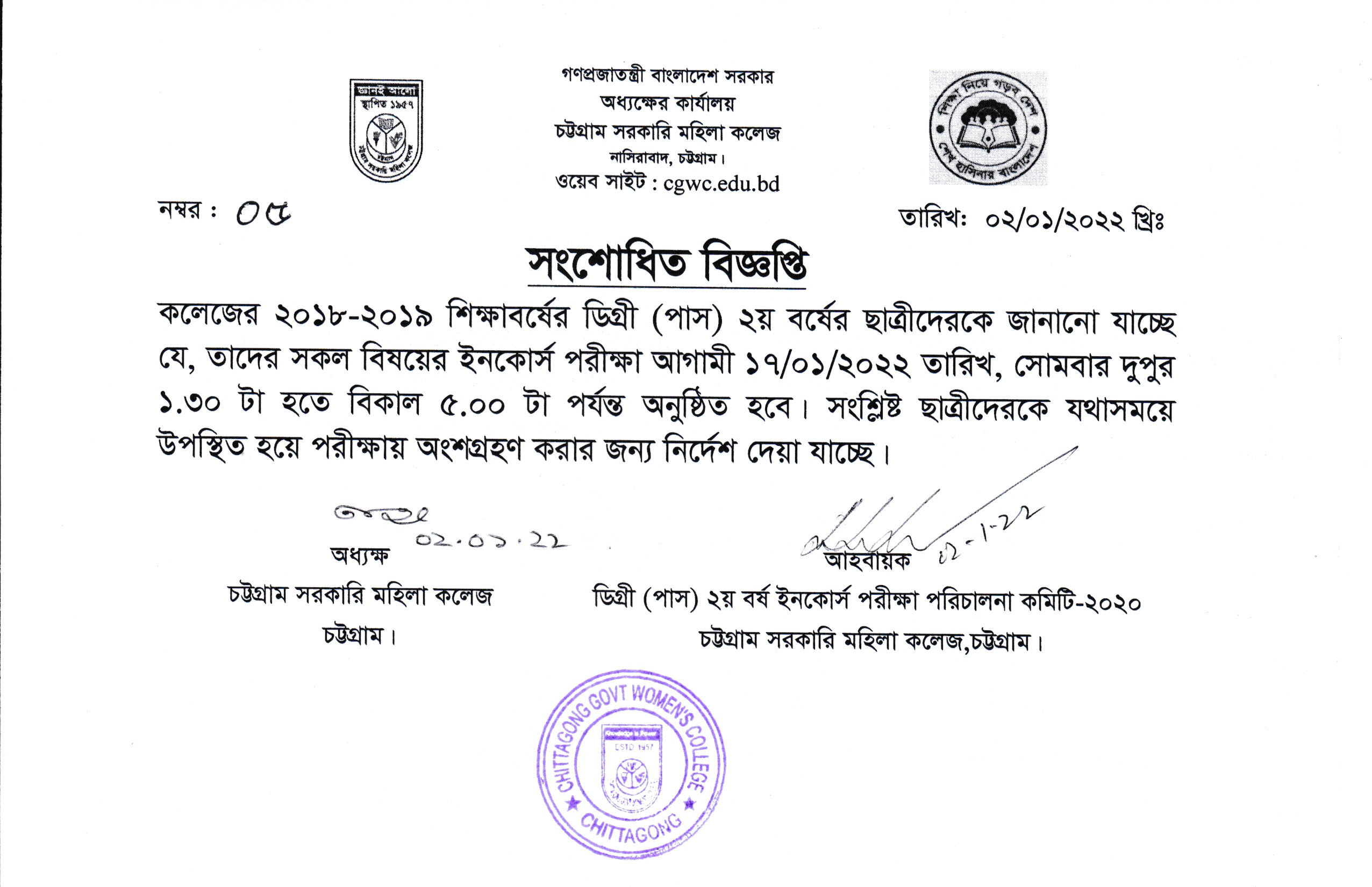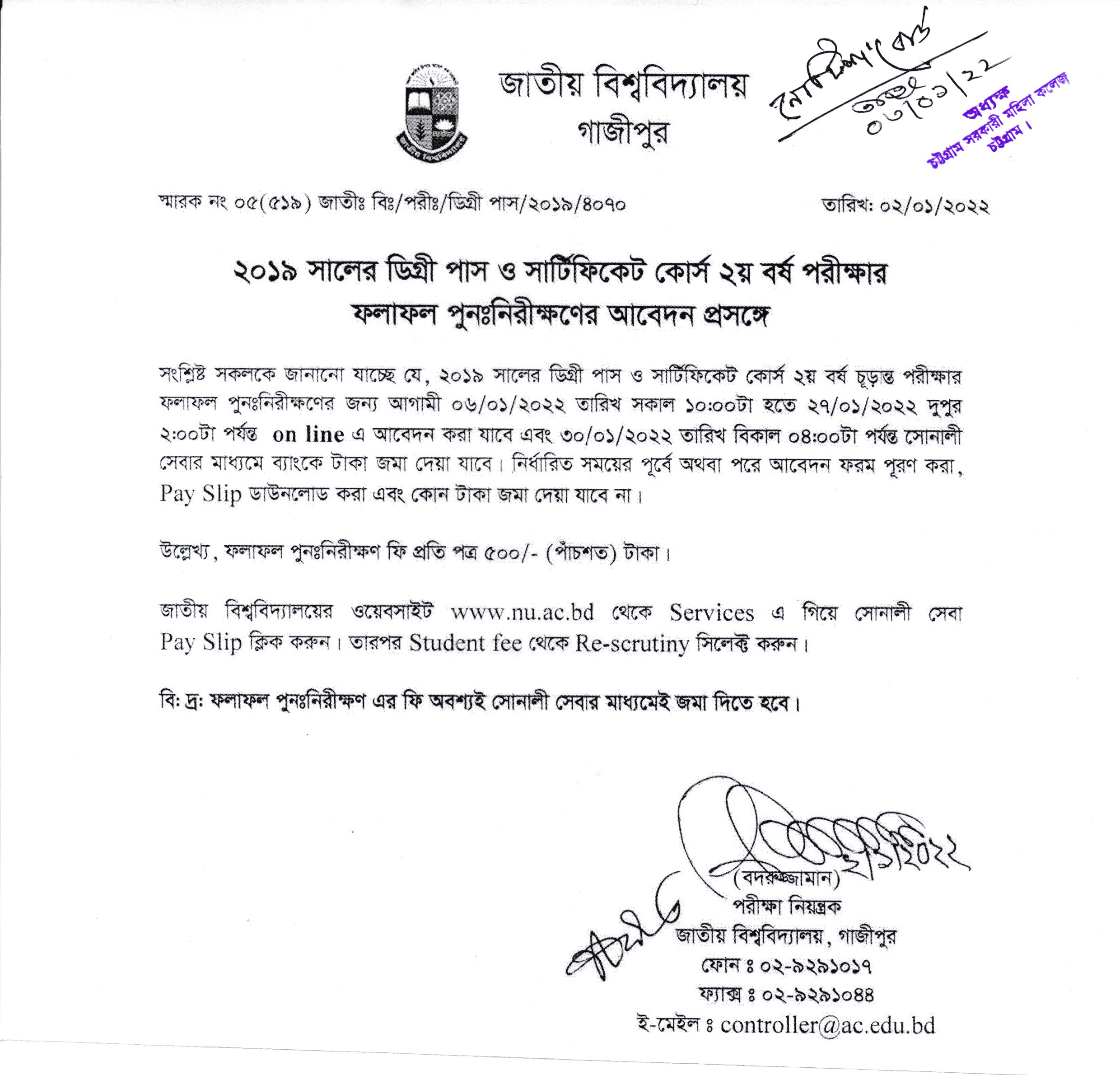 ২০১৯ সালের ডিগ্রি (পাস) ২য় বর্ষ পরীক্ষার ফলাফল পুনঃনিরীক্ষণের বিজ্ঞপ্তি (০৩/০১/২০২২)