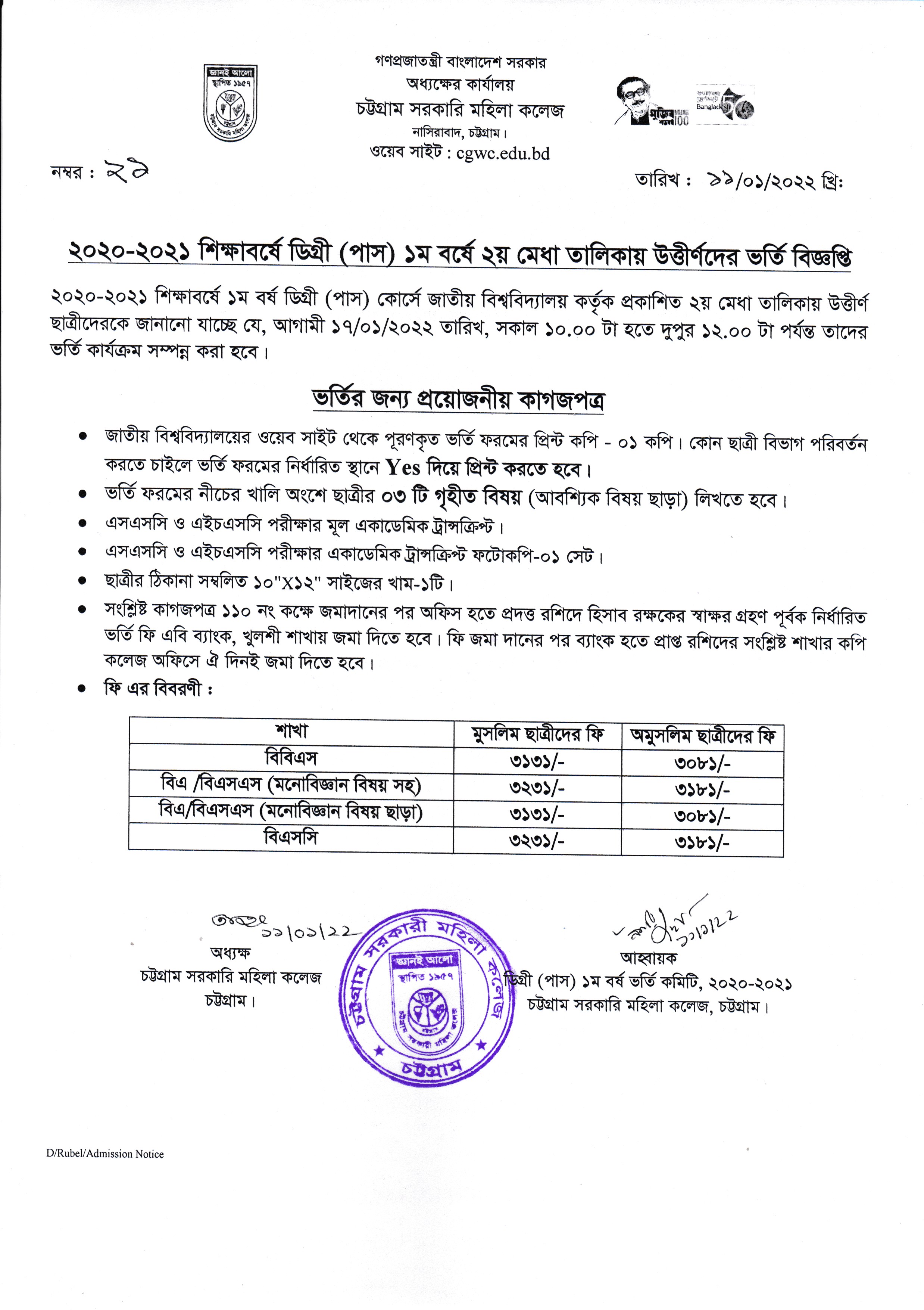 ২০২০-২০২১ শিক্ষাবর্ষে ডিগ্রী (পাস) ১ম বর্ষে ২য় মেধাতালিকায় ভর্তি বিজ্ঞপ্তি (১১/০১/২০২২)