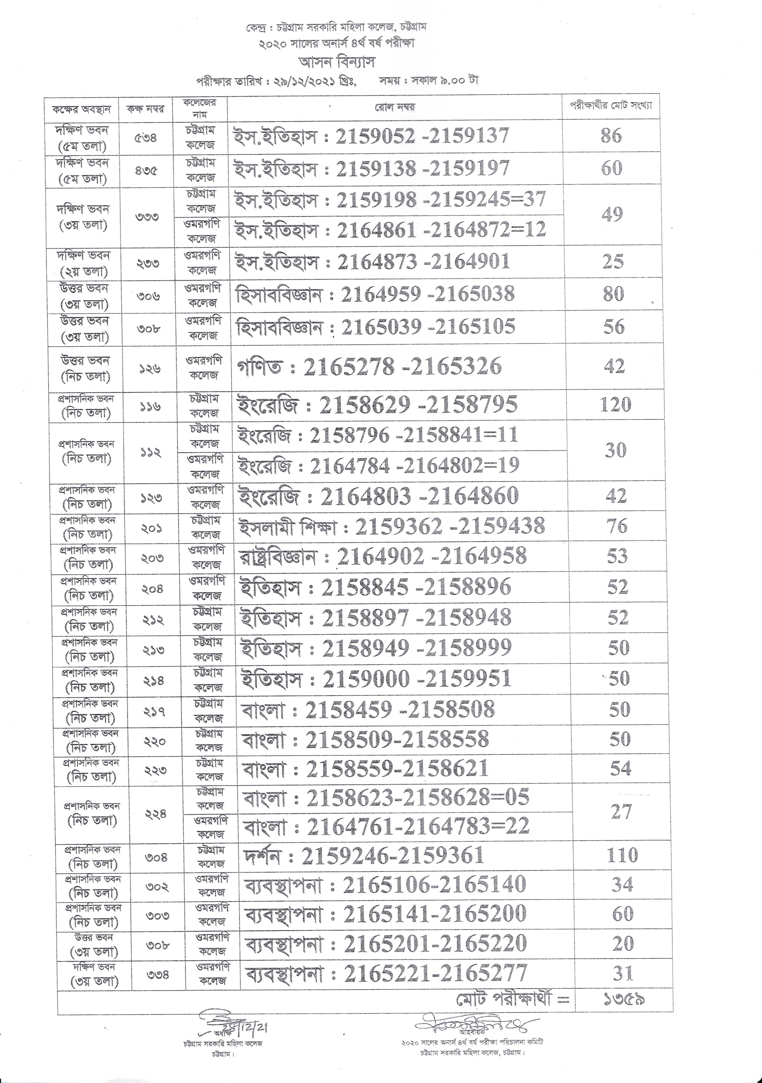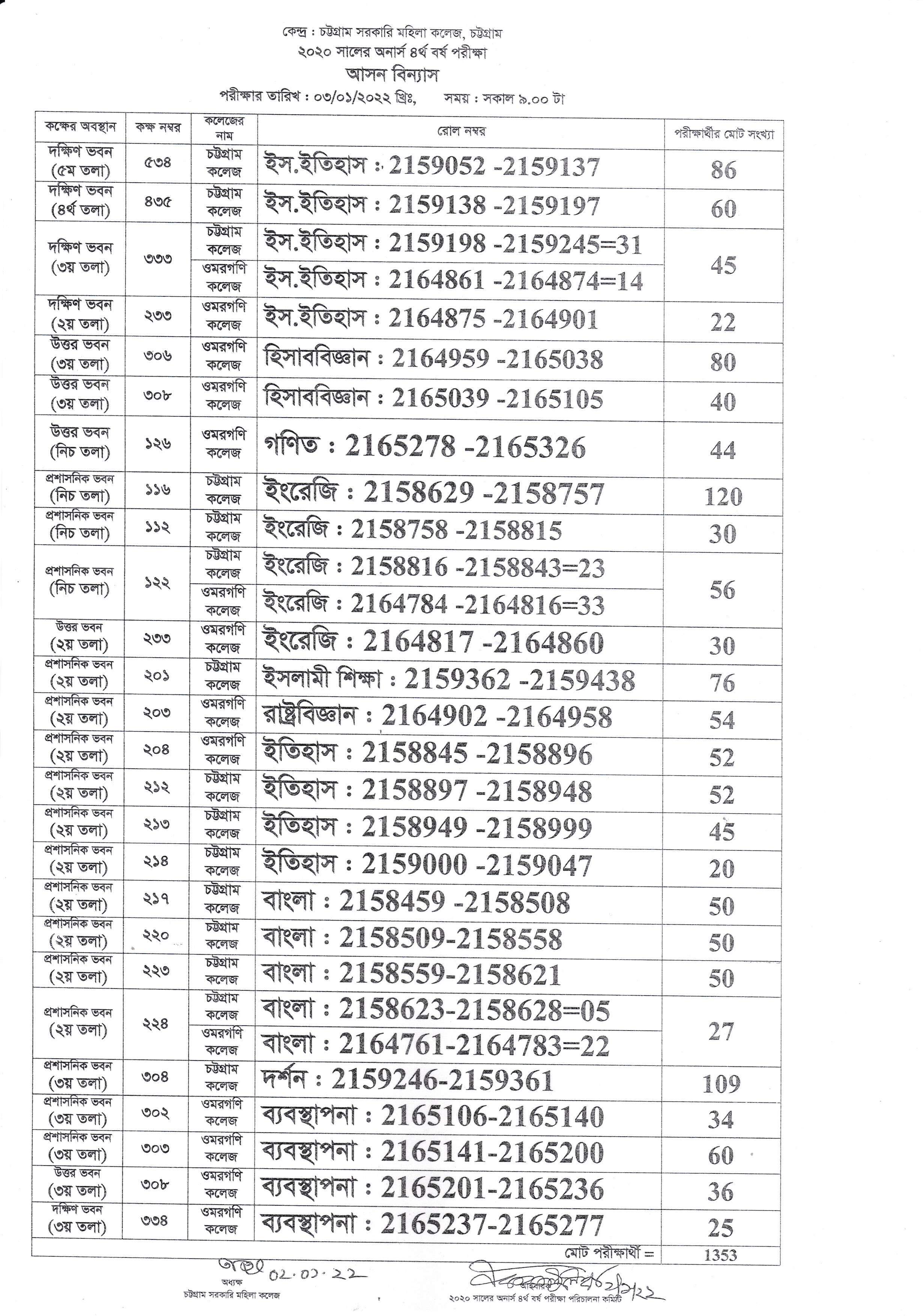অনার্স ৪র্থ বর্ষ চূড়ান্ত পরীক্ষা-২০২০ এর আসন বিন্যাস প্রকাশ (০২/০১/২০২২)