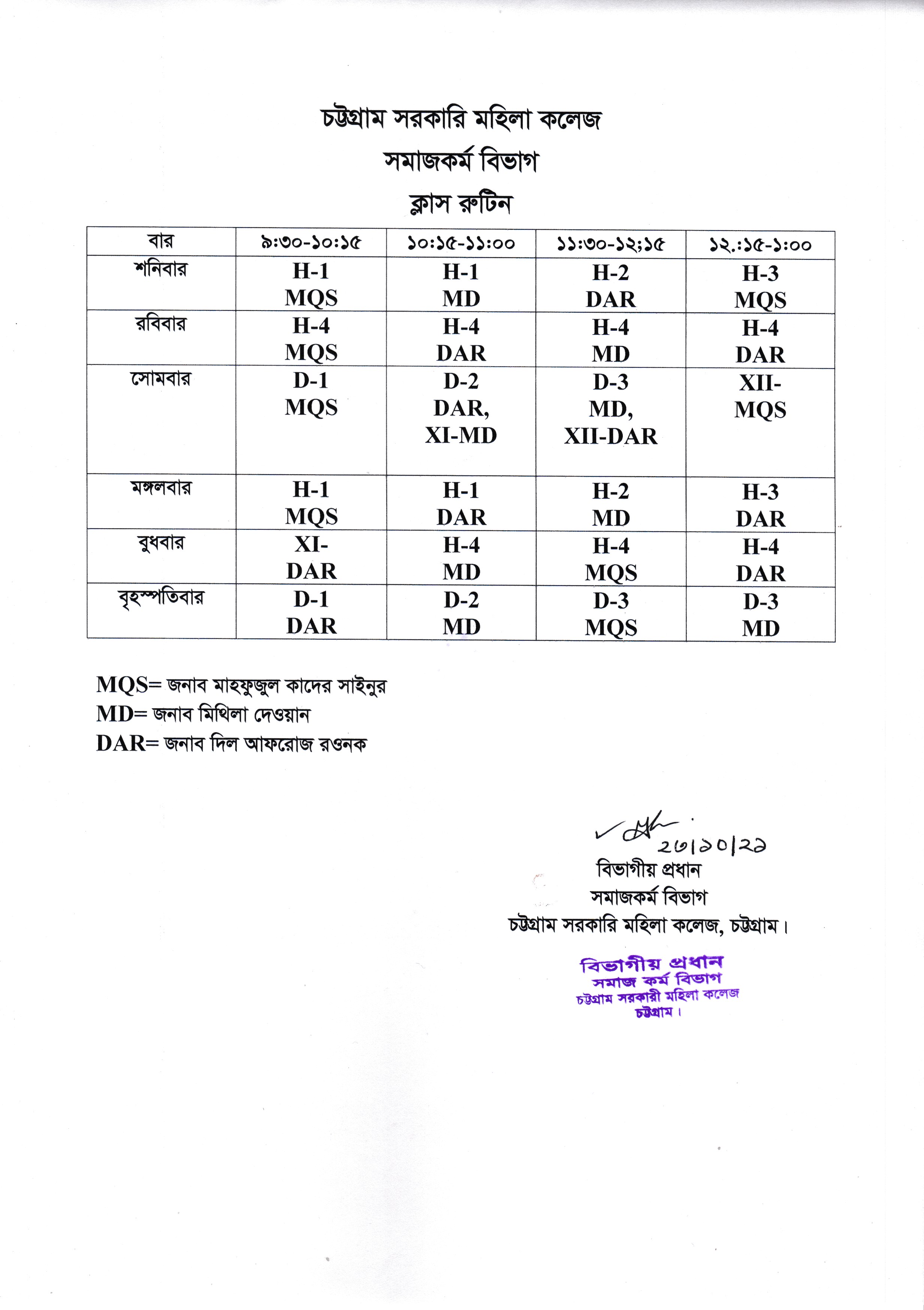 সমাজকর্ম বিভাগের ক্লাস রুটিন প্রকাশ : ২৩/১০/২০২১)