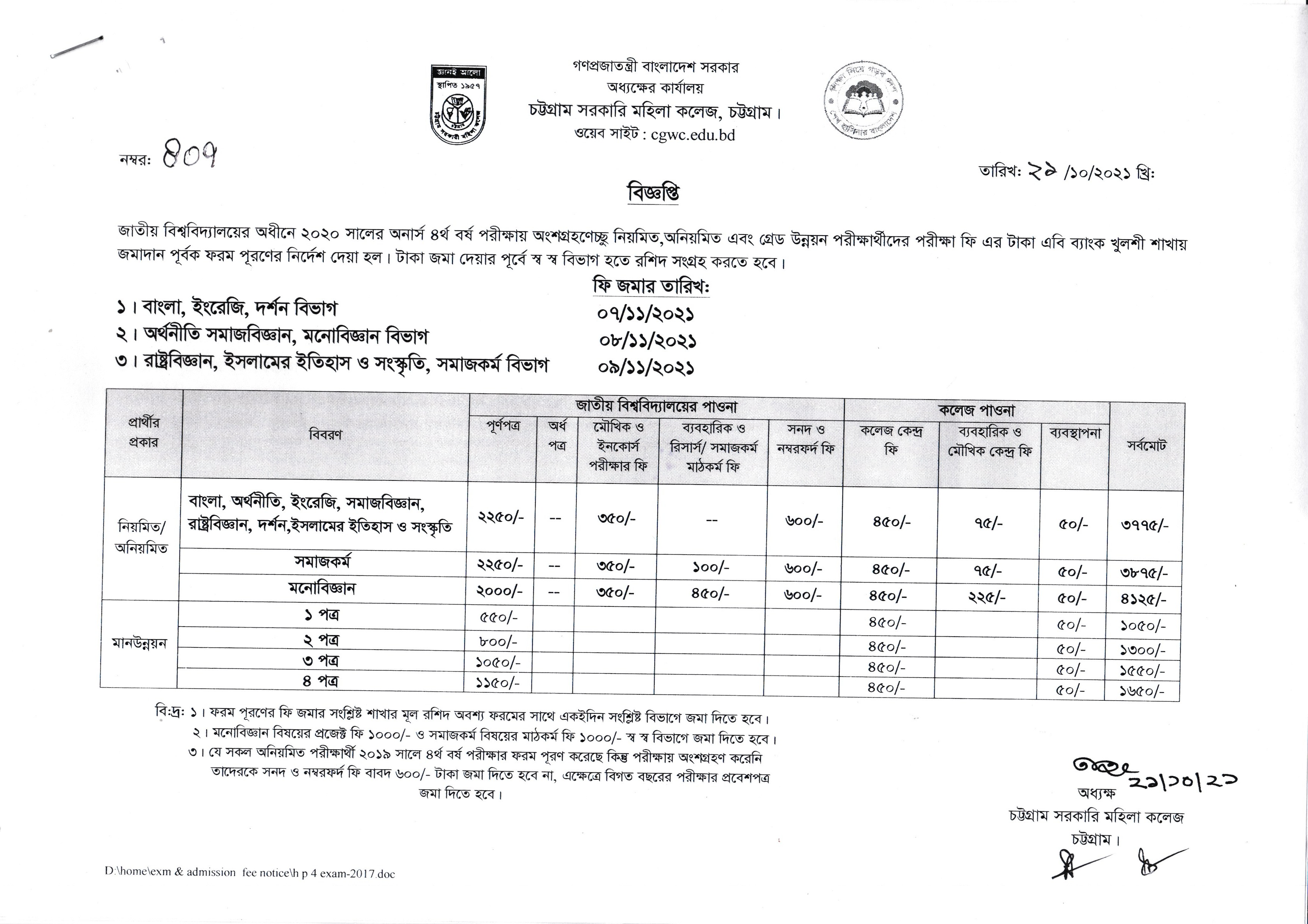 ২০২০ সালের অনার্স ৪র্থ বর্ষ (বিশেষ) পরীক্ষার ফরম পূরণ সংক্রান্ত সংশোধিত বিজ্ঞপ্তি প্রকাশ (২৩/১০/২০২১)