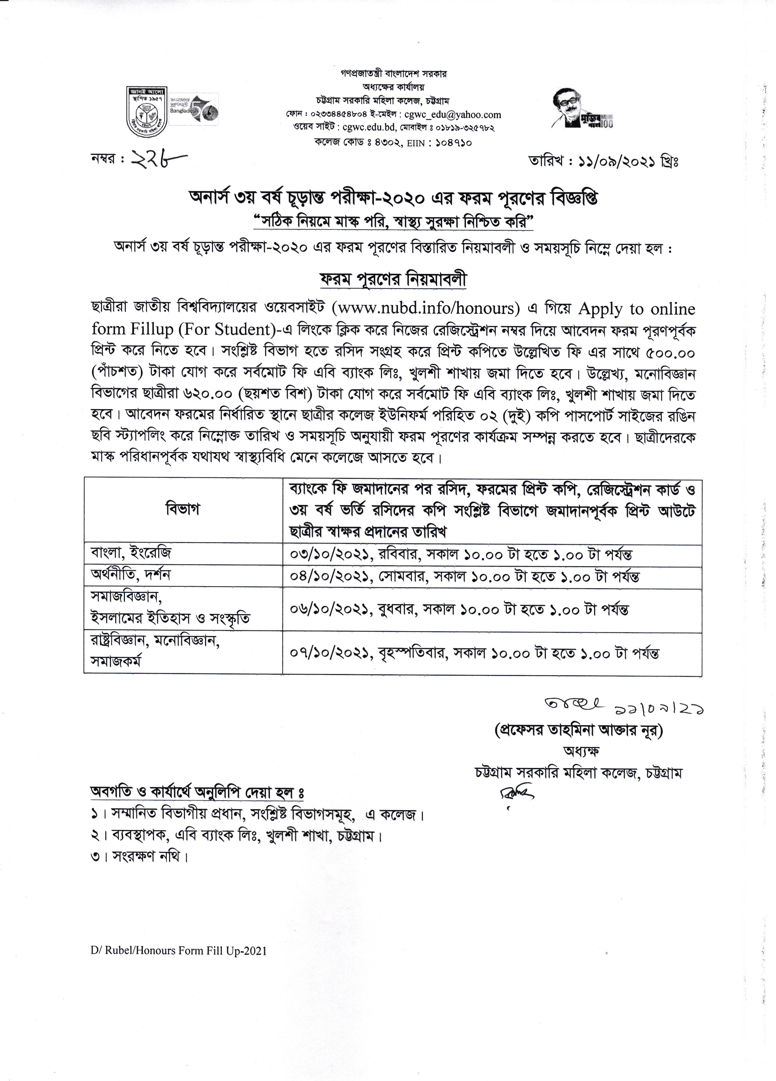 অনার্স ৩য় বর্ষ চূড়ান্ত পরীক্ষা-২০২০ এর ফরম পূরণের বিজ্ঞপ্তি প্রকাশ (১১/০৯/২০২১)