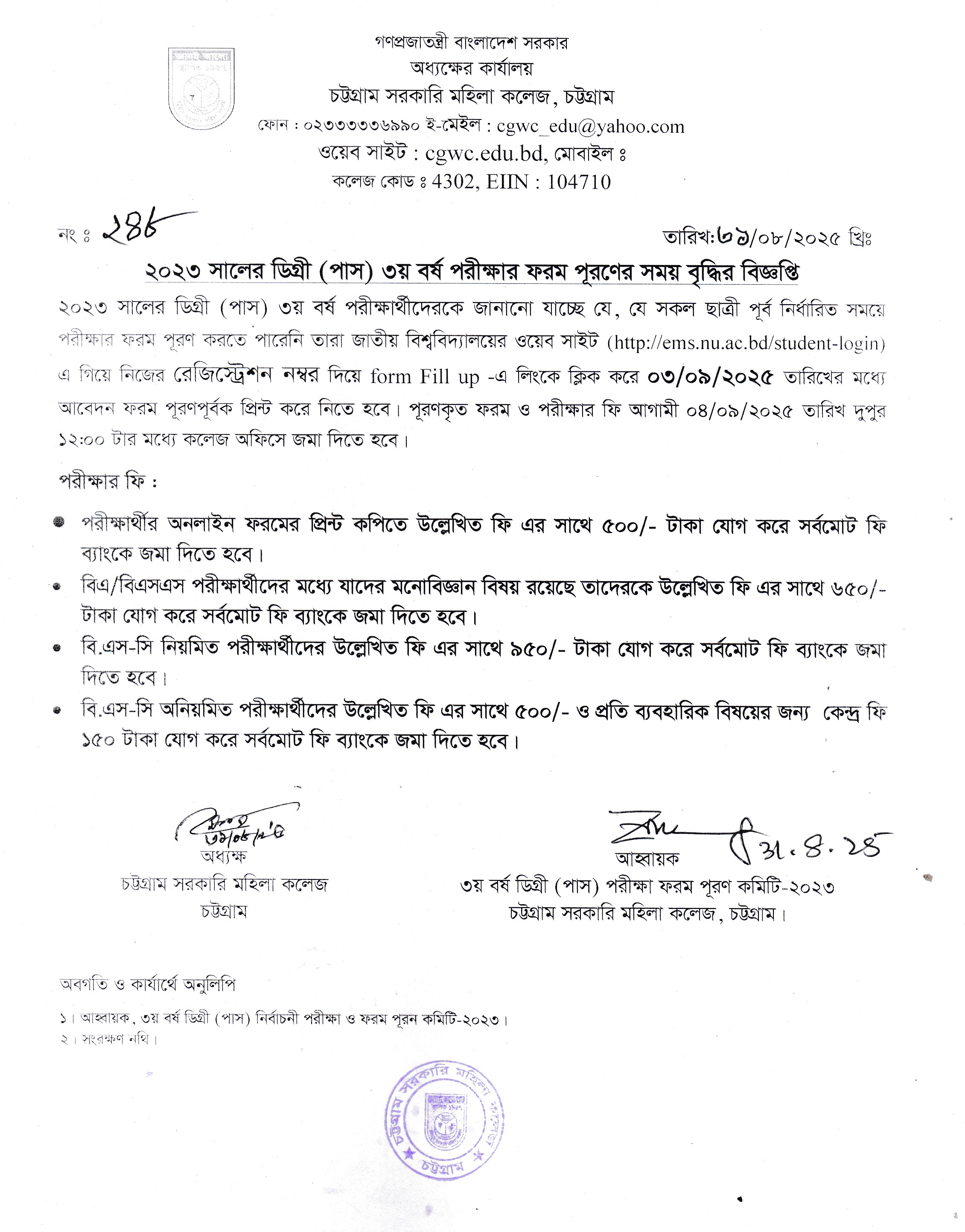 ২০২৩ সালের ডিগ্রী (পাস) ৩য় বর্ষ পরীক্ষার ফরম পূরণের সময় বৃদ্ধি সংক্রান্ত বিজ্ঞপ্তি