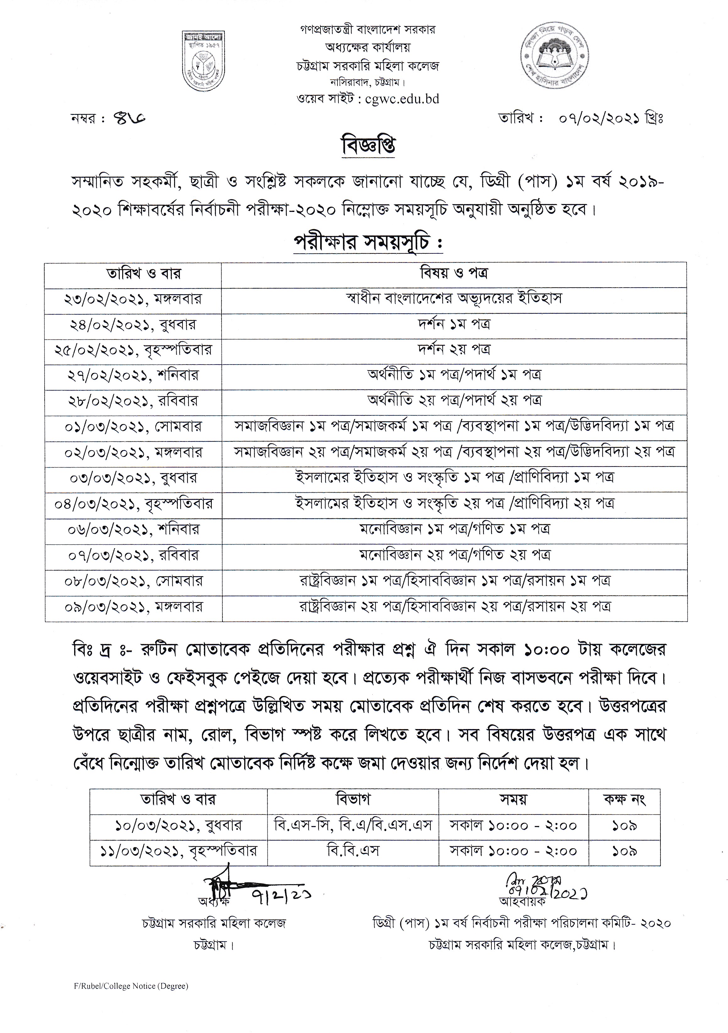 ২০১৯-২০২০ শিক্ষাবর্ষের ডিগ্রী (পাস) ১ম বর্ষের নির্বাচনী পরীক্ষা-২০২০ এর সময়সূচি প্রকাশ (০৭/০২/২০২১ খ্রিঃ)