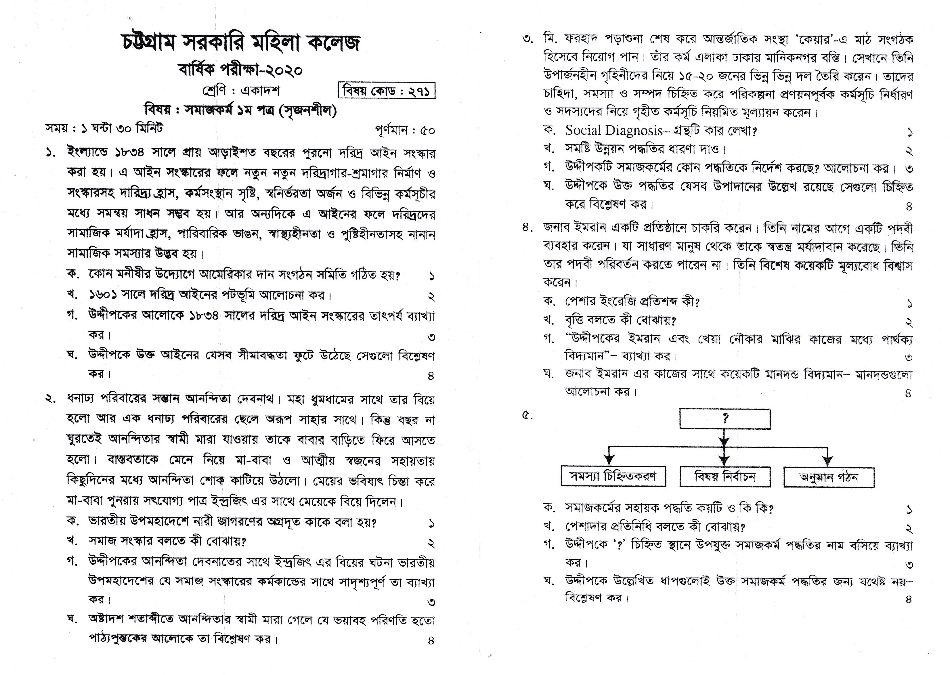 ২০১৯-২০২০ শিক্ষাবর্ষের উচ্চ মাধ্যমিক একাদশ শ্রেণির (পুরাতন ব্যাচ) বার্ষিক পরীক্ষা-২০২০ এর সমাজকর্ম্ প্রশ্ন (২৪/১০/২০২০ খ্রিঃ)