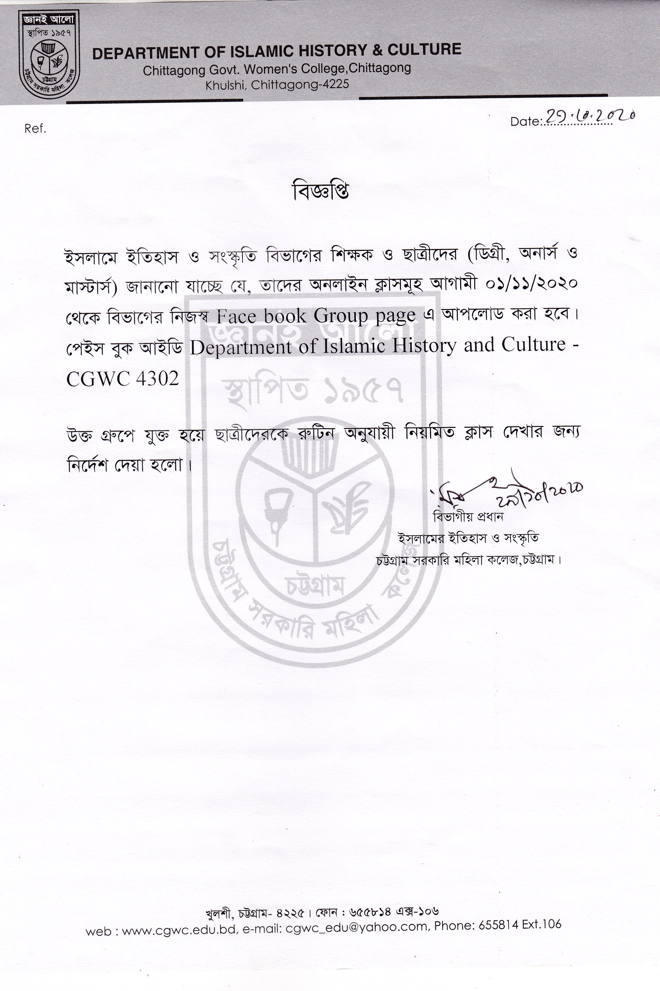 ইসলামে ইতিহাস ও সংস্কৃতি বিভাগে অনলাইন ক্লাসসমূহ বিজ্ঞপ্তি