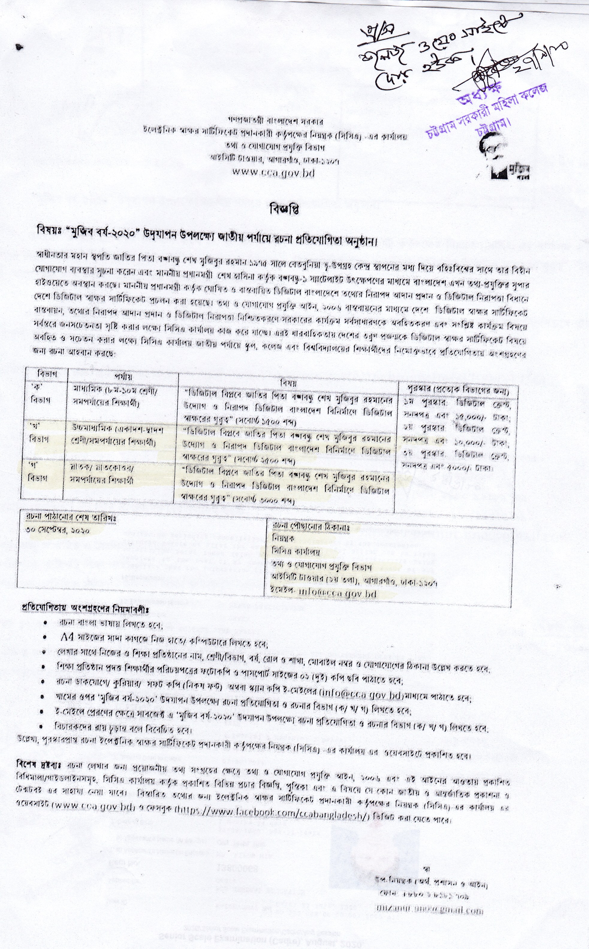 “মুজিব বর্ষ-২০২০” উদযাপন উপলক্ষ্যে জাতীয় পর্যায়ে রচনা প্রতিযোগিতা অনুষ্ঠানের বিজ্ঞপ্তি
