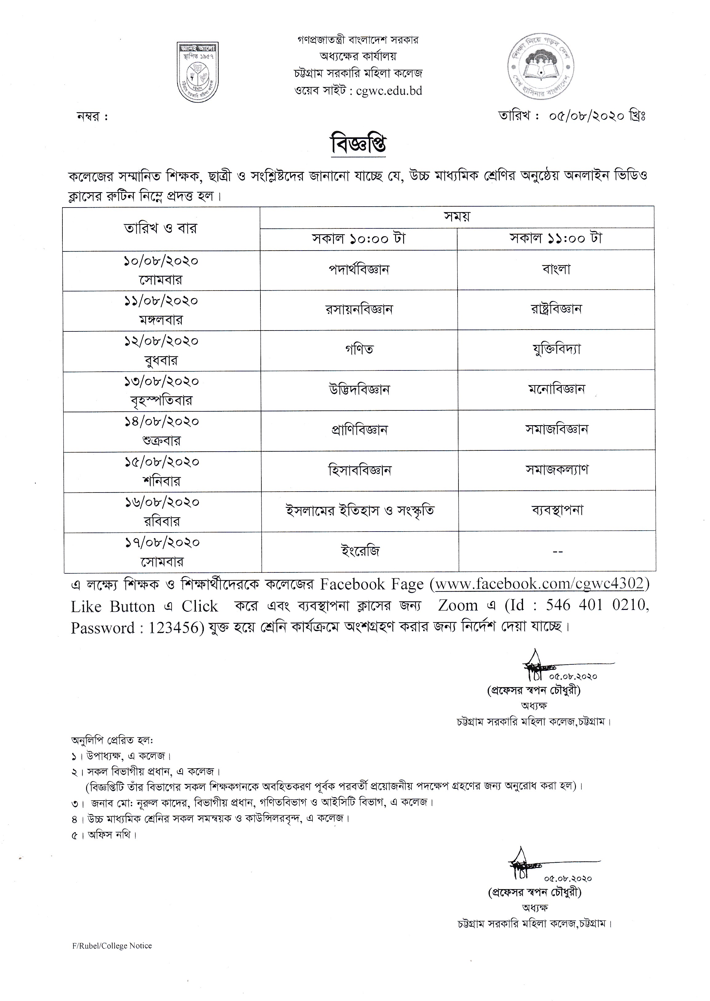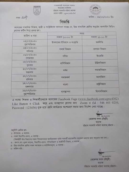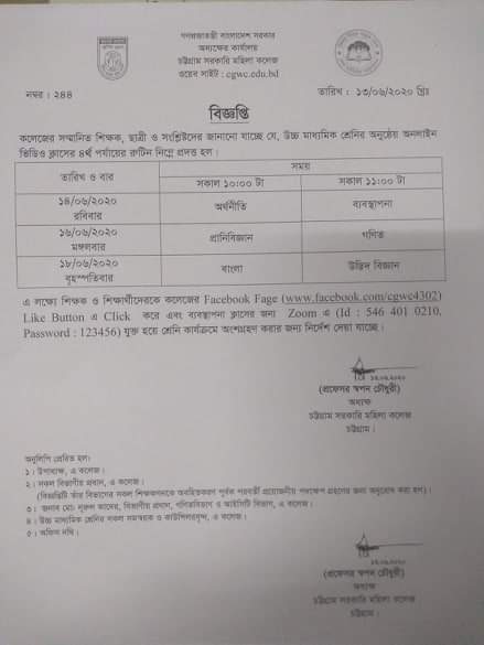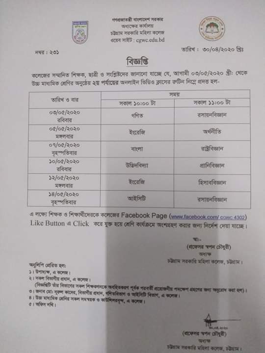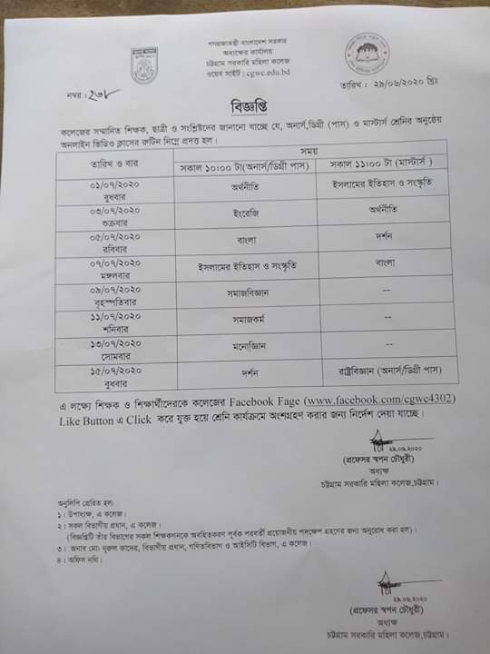 স্নাতক/স্নাতকোত্তর পর্যায়ে শিক্ষকদের অনলাইনে পাঠদান সংক্রান্ত বিজ্ঞপ্তি