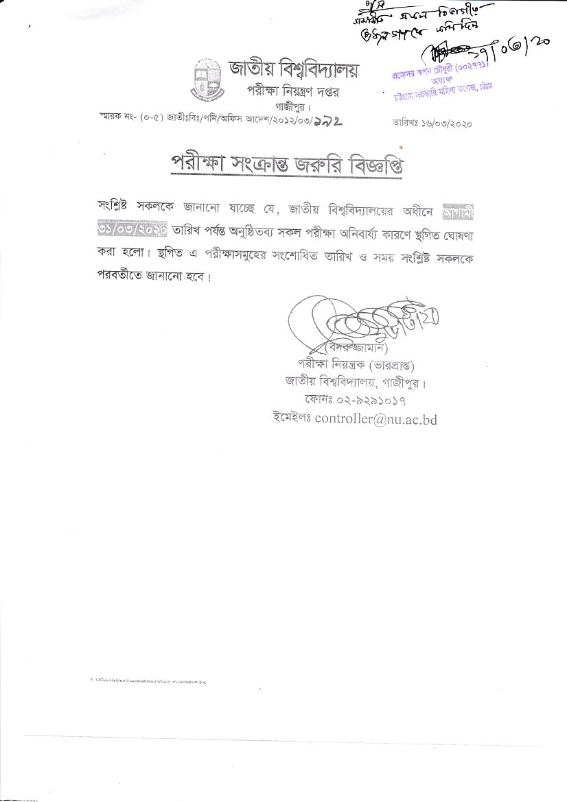 পরীক্ষা স্থগিত সংক্রান্ত বিজ্ঞপ্তি