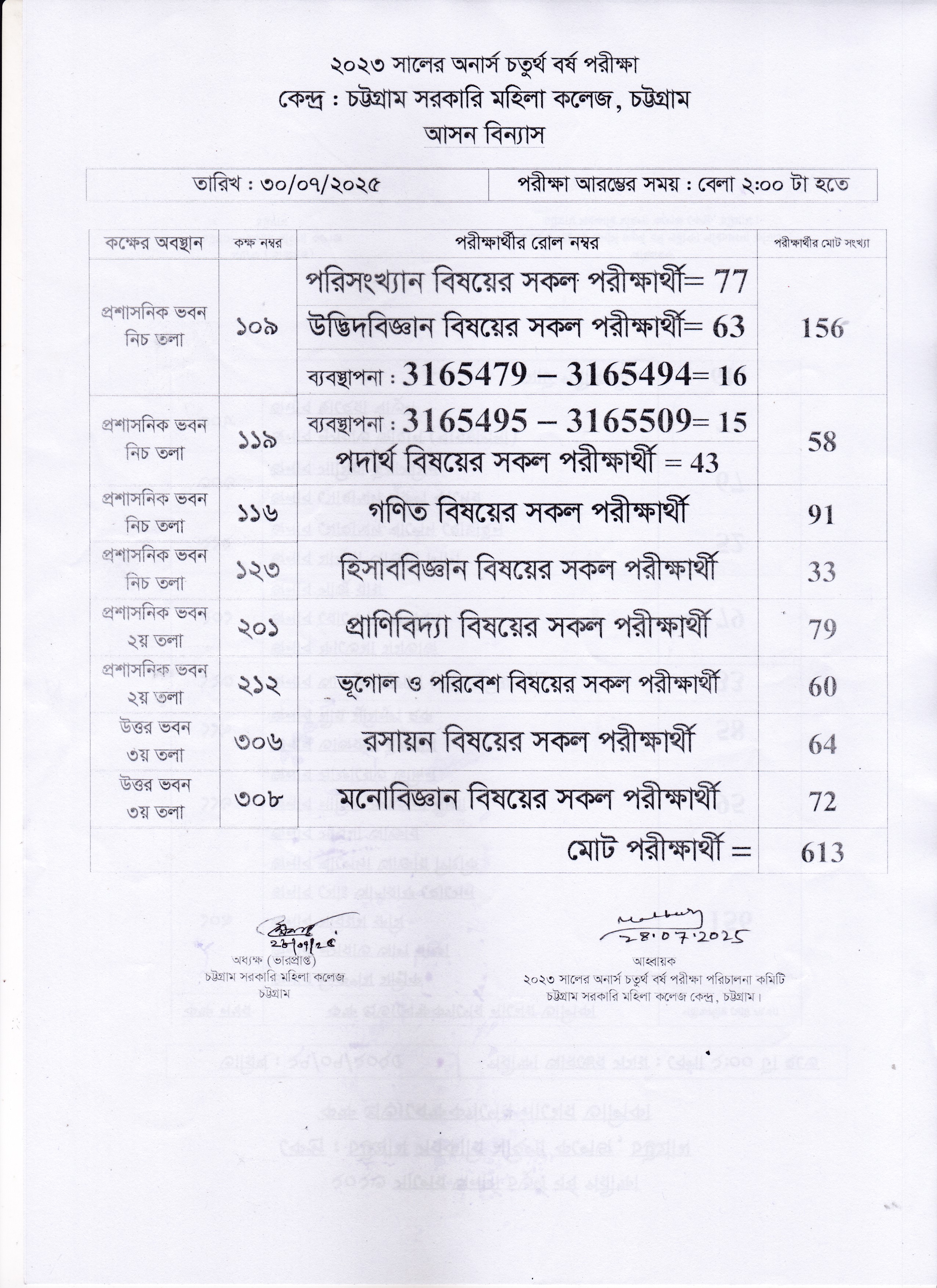 অদ্য ২৮/০৭/২০২৫ তারিখের ২০২৩ সালের ডিগ্রী পাস ২য় বর্ষ পরীক্ষার আসন বিন্যাস
