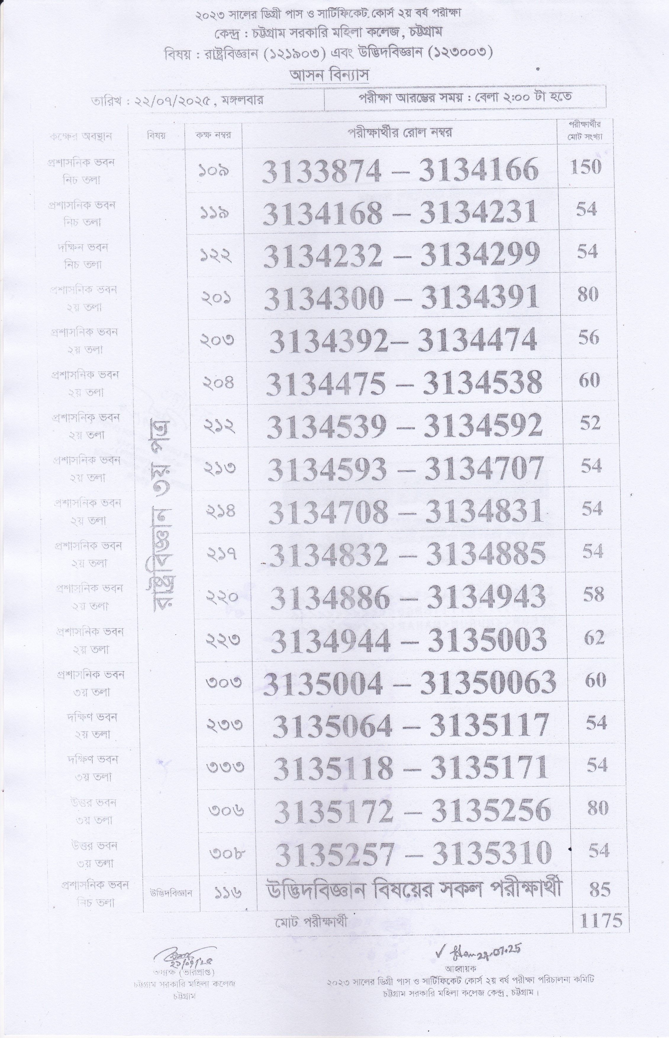 আগামী ২২/০৭/২০২৫ তারিখের ২০২৩ সালের ডিগ্রী পাস ২য় বর্ষ পরীক্ষার আসন বিন্যাস