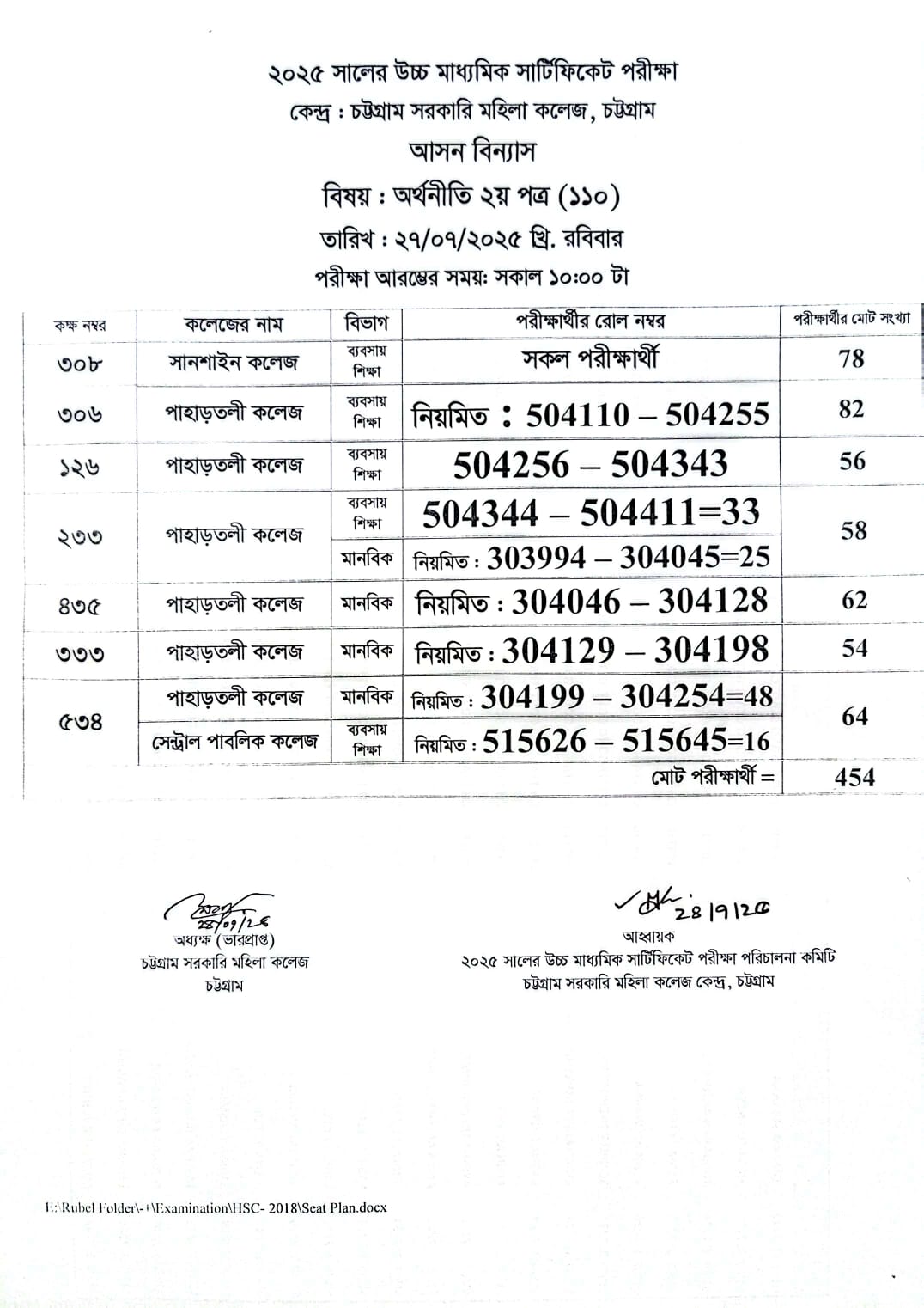 উচ্চ মাধ্যমিক পরীক্ষা ২০২৫ এর আগামী ২০/০৭/২০২৫ ও ২২/০৭/২০২৫ তারিখের আসন বিন্যাস।