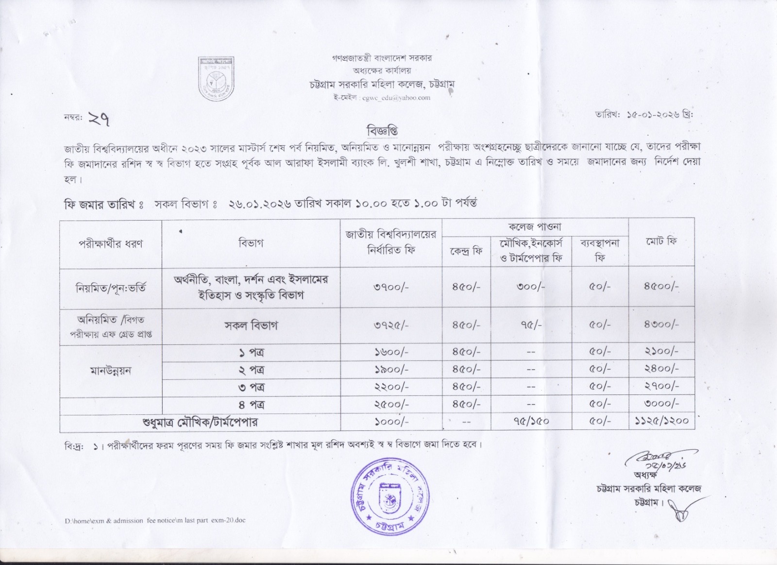 ২০২৩ সালের মাস্টার্স শেষপর্ব পরীক্ষার ফরম পূরণ সংক্রান্ত বিজ্ঞপ্তি।