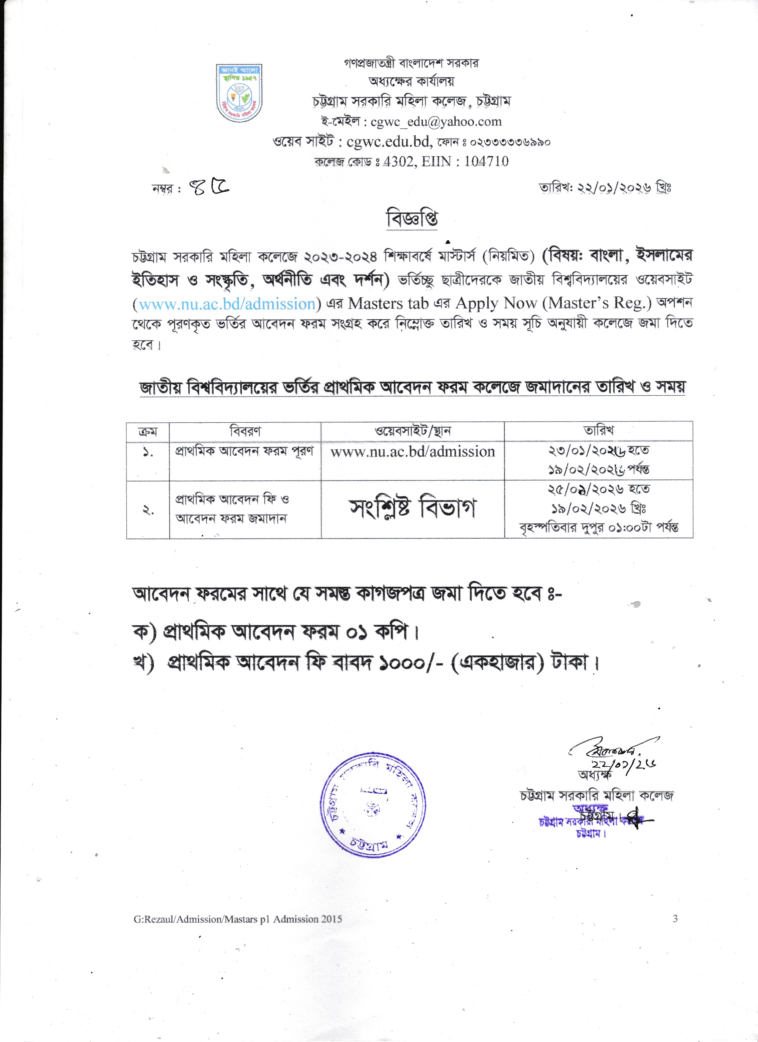 ২০২৩-২০২৪ শিক্ষাবর্ষে মাস্টার্স শেষপর্ব ভর্তির প্রাথমিক আবেদন সংক্রান্ত বিজ্ঞপ্তি।