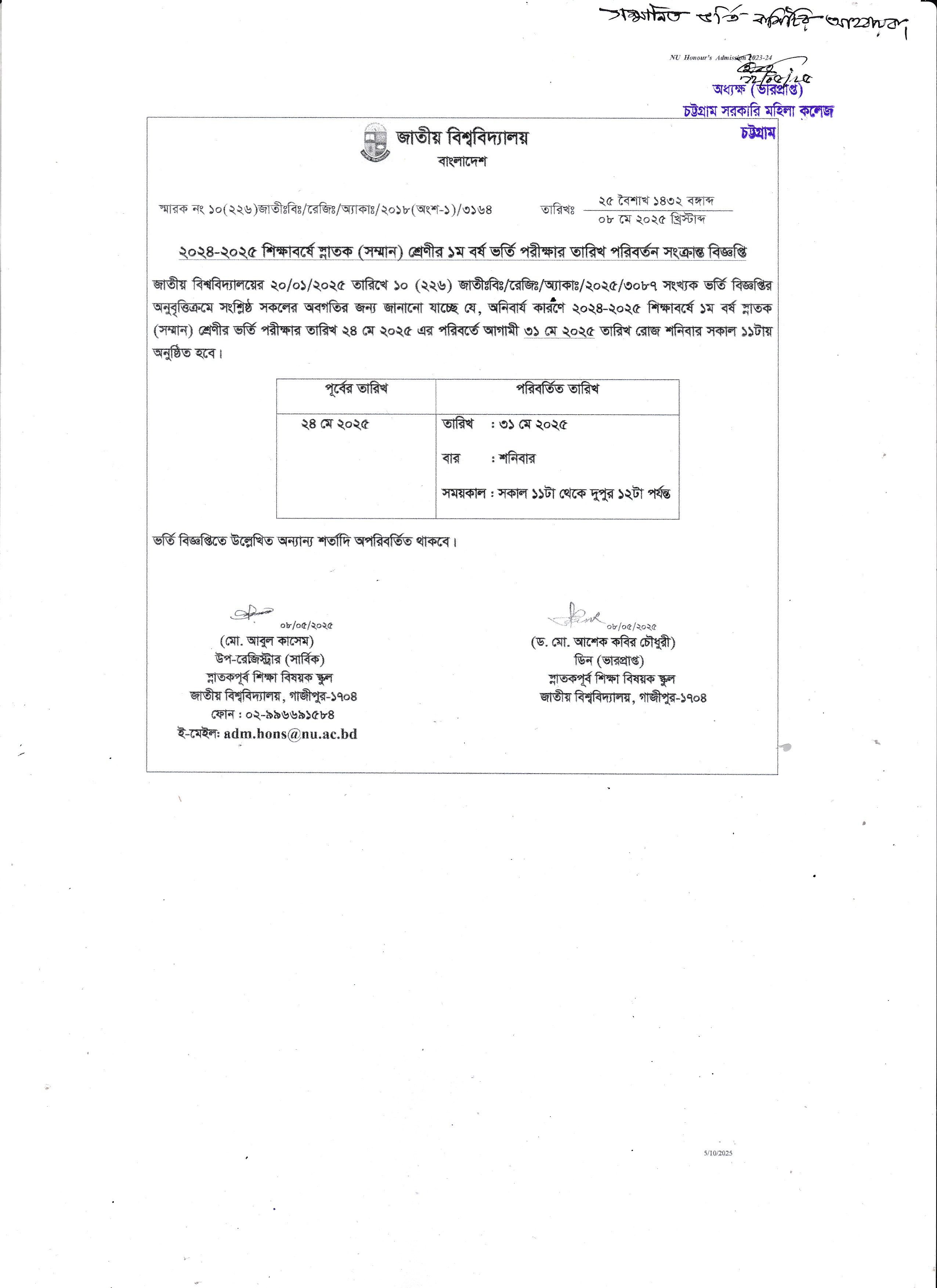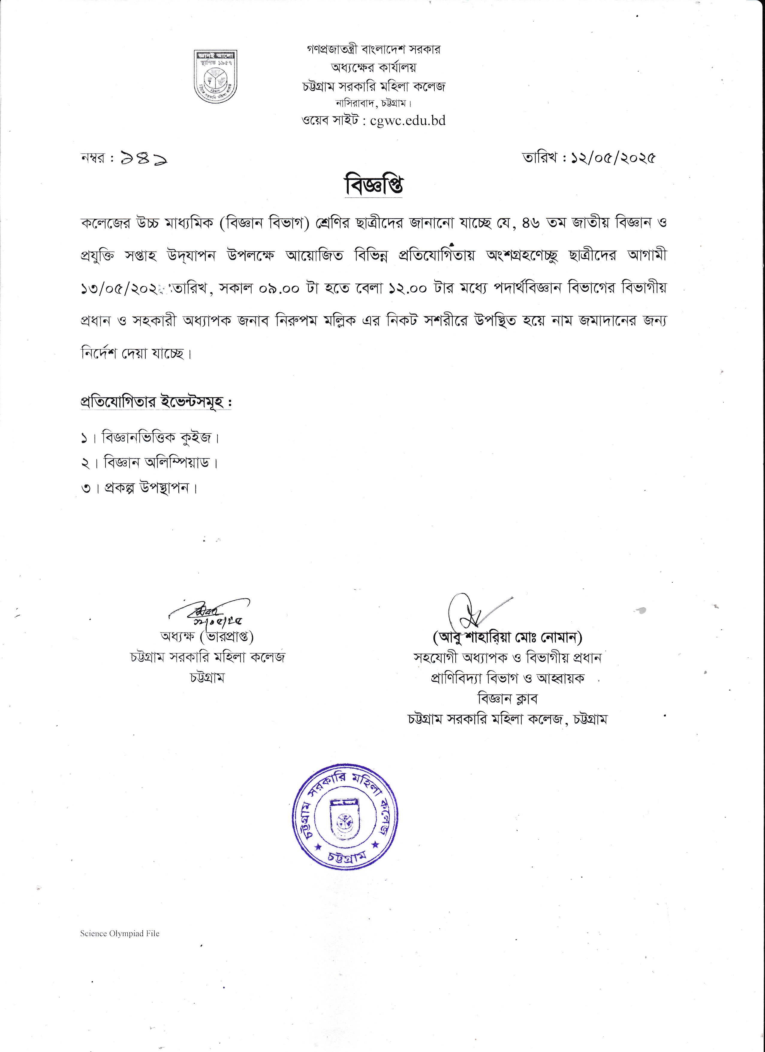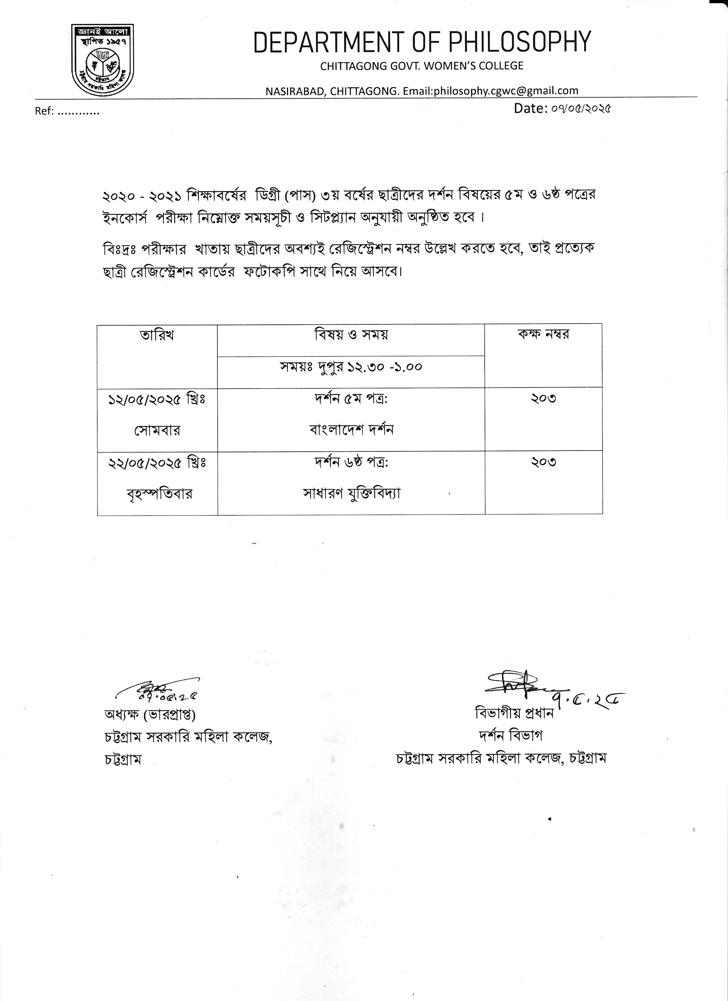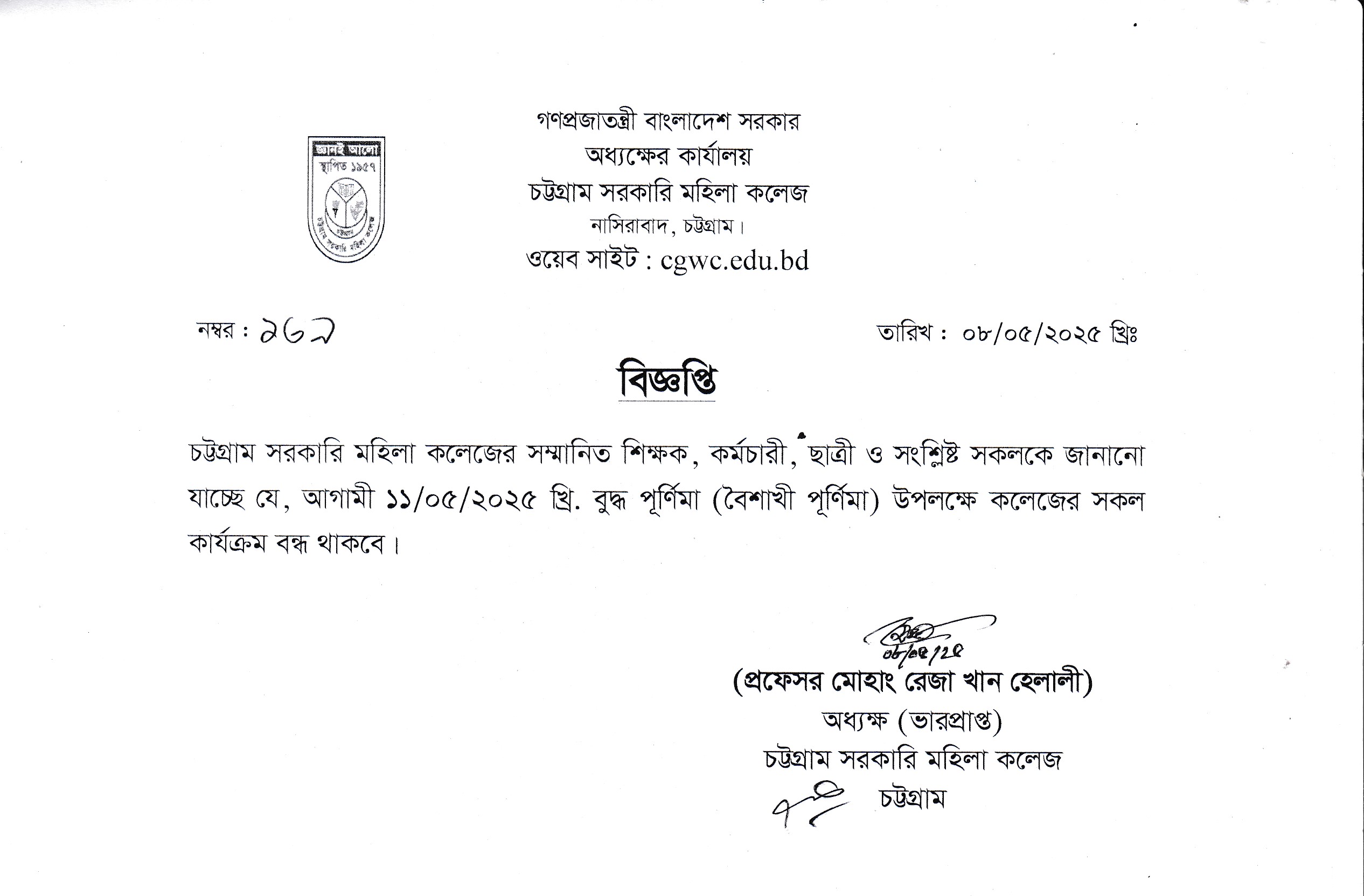 কলেজ বন্ধের বিজ্ঞপ্তি (০৮/০৫/২০২৫)