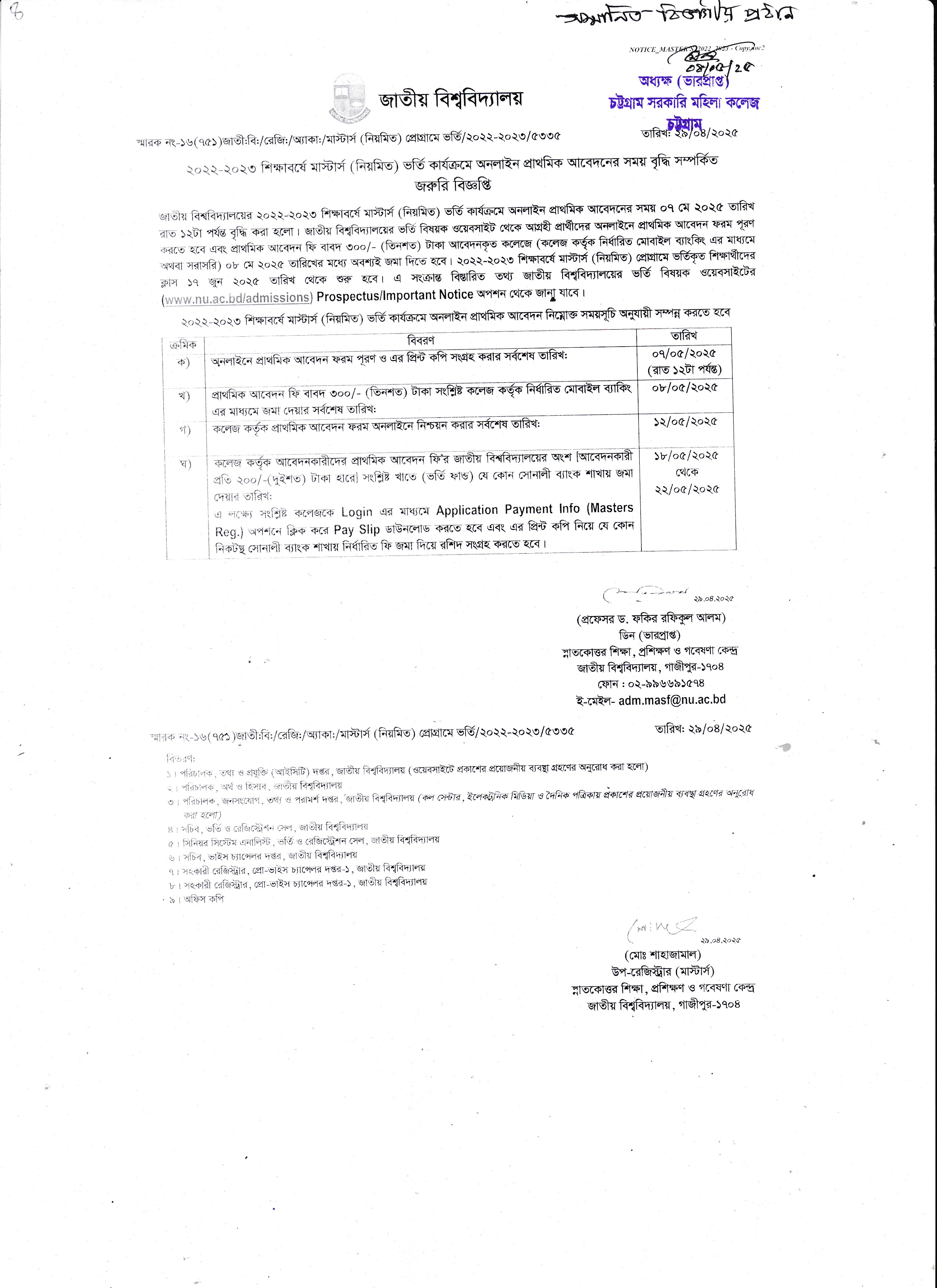 ২০২২-২০২৩ শিক্ষাবর্ষে মাস্টার্স (নিয়মিত) প্রোগ্রামে ভর্তির প্রাথমিক আবেদনের সময়বৃদ্ধি সংক্রান্ত বিজ্ঞপ্তি
