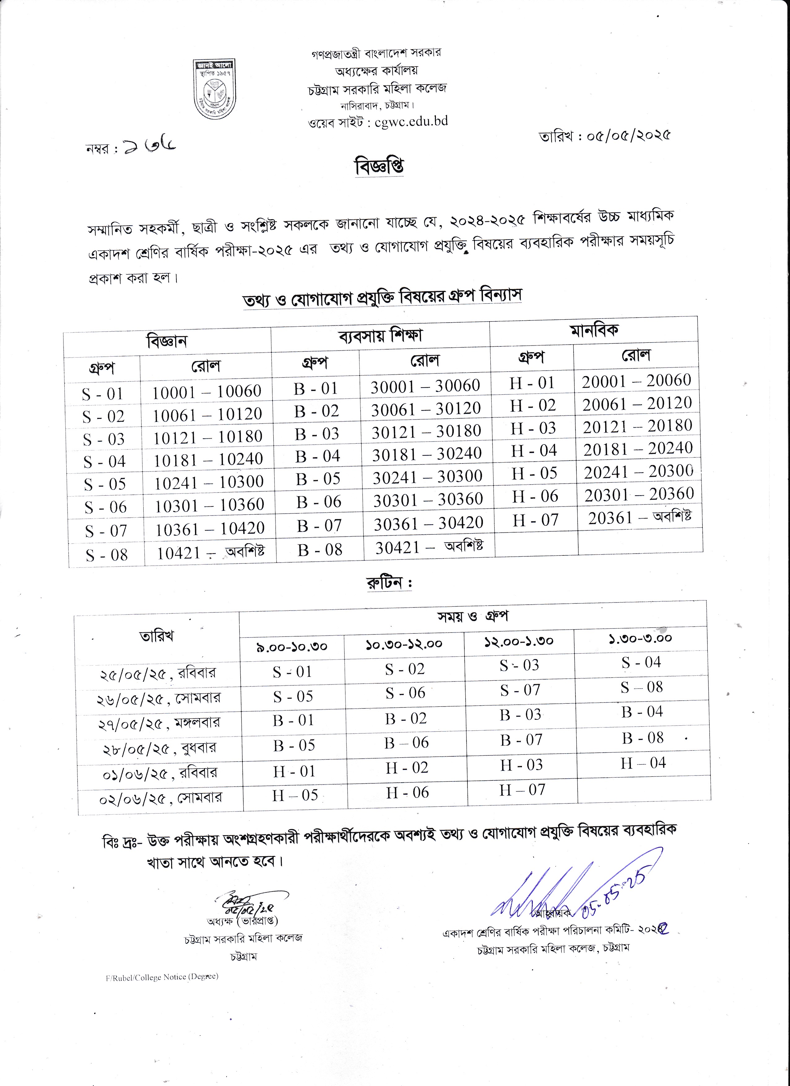 ২০২৪-২০২৫ শিক্ষাবর্ষে একাদশ শ্রেণির বার্ষিক পরীক্ষা-২০২৫ এর তথ্য ও যোগাযোগ প্রযুক্তি বিষয়ের ব্যবহারিক পরীক্ষার সময়সূচি প্রকাশ:
