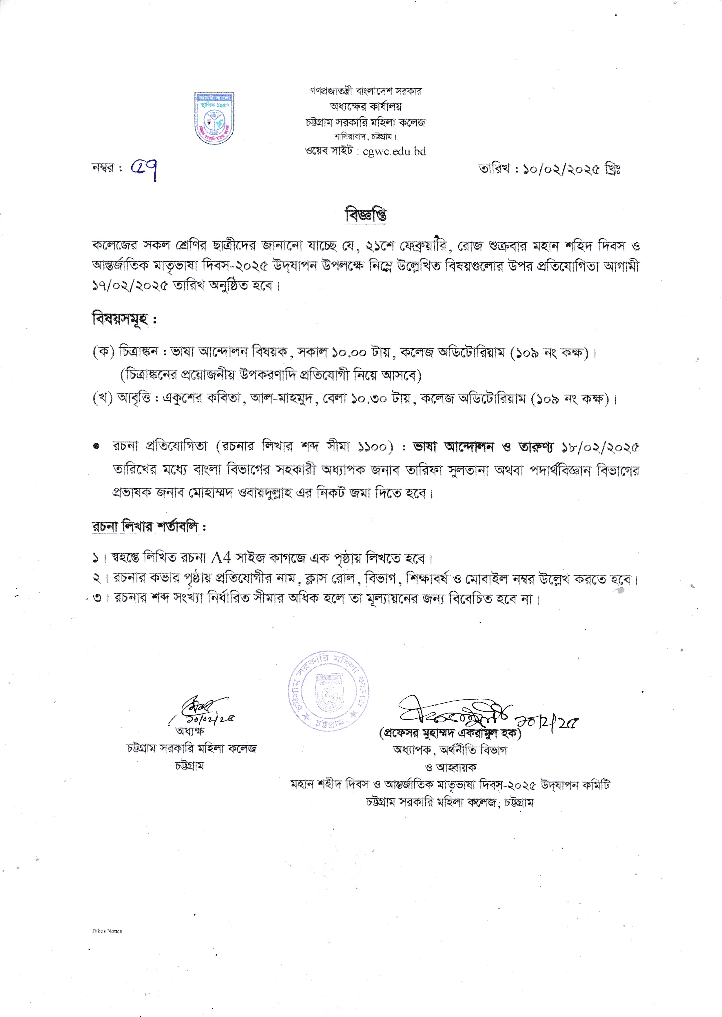 আন্তর্জাতিক মাতৃভাষা দিবস-২০২৫ উপলক্ষে বিভিন্ন প্রতিযোগিতা সংক্রান্ত বিজ্ঞপ্তি
