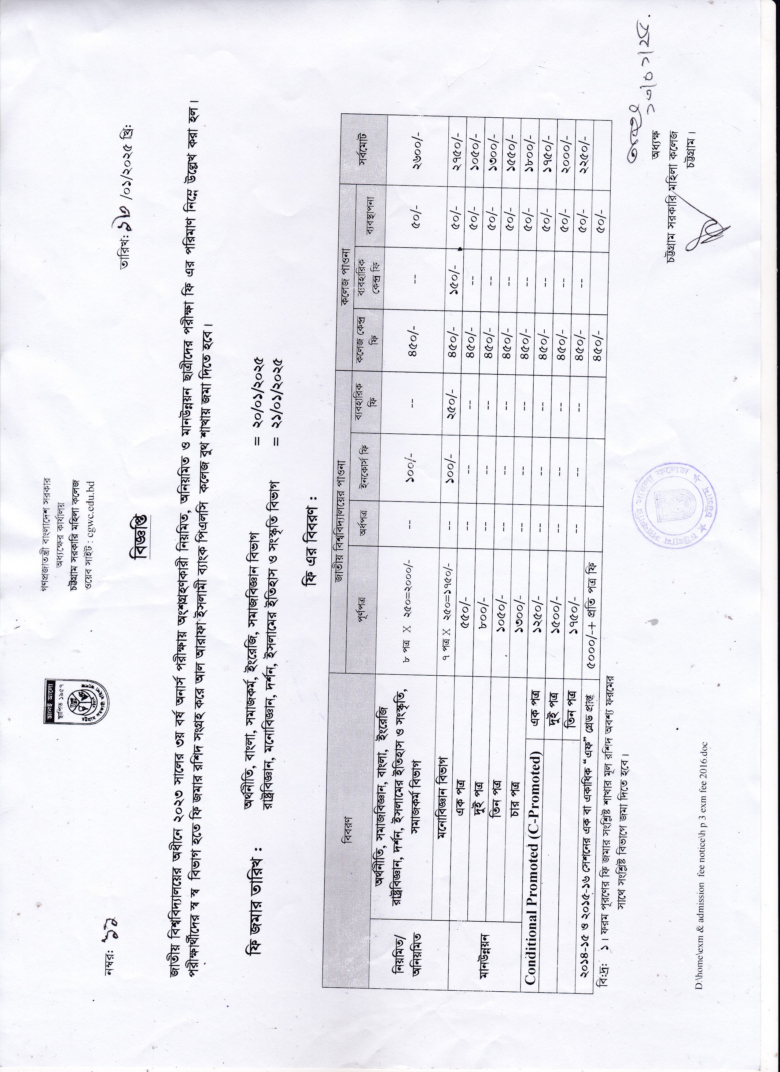 মাদার তেরেসা ছাত্রী নিবাসে অবস্থানকারী ছাত্রীদের ফি জমাদান সংক্রান্ত পুন: বিজ্ঞপ্তি