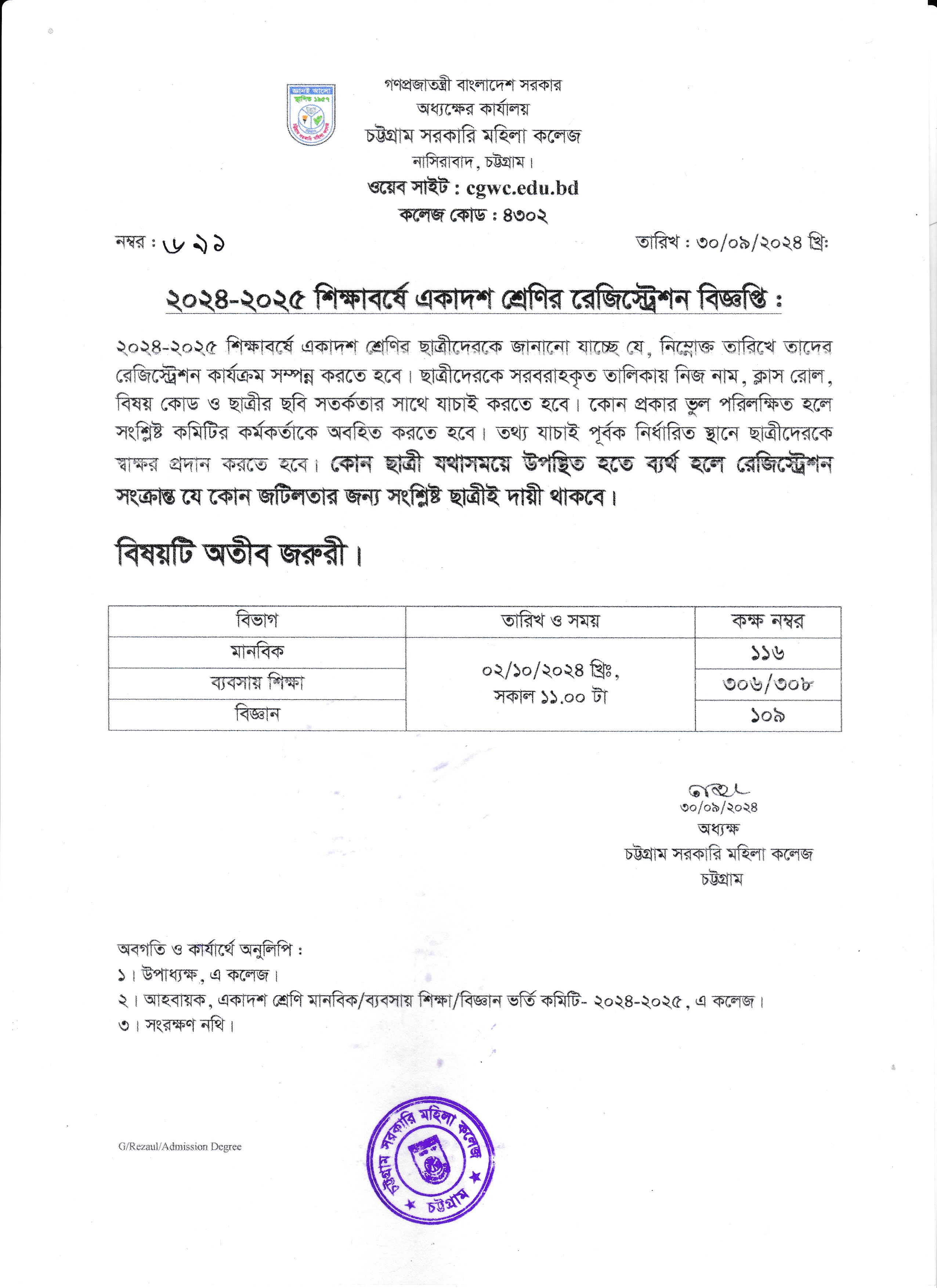 ২০২৪-২০২৫ শিক্ষাবর্ষের একাদশ শ্রেণির রেজিস্ট্রেশন সংক্রান্ত বিজ্ঞপ্তি