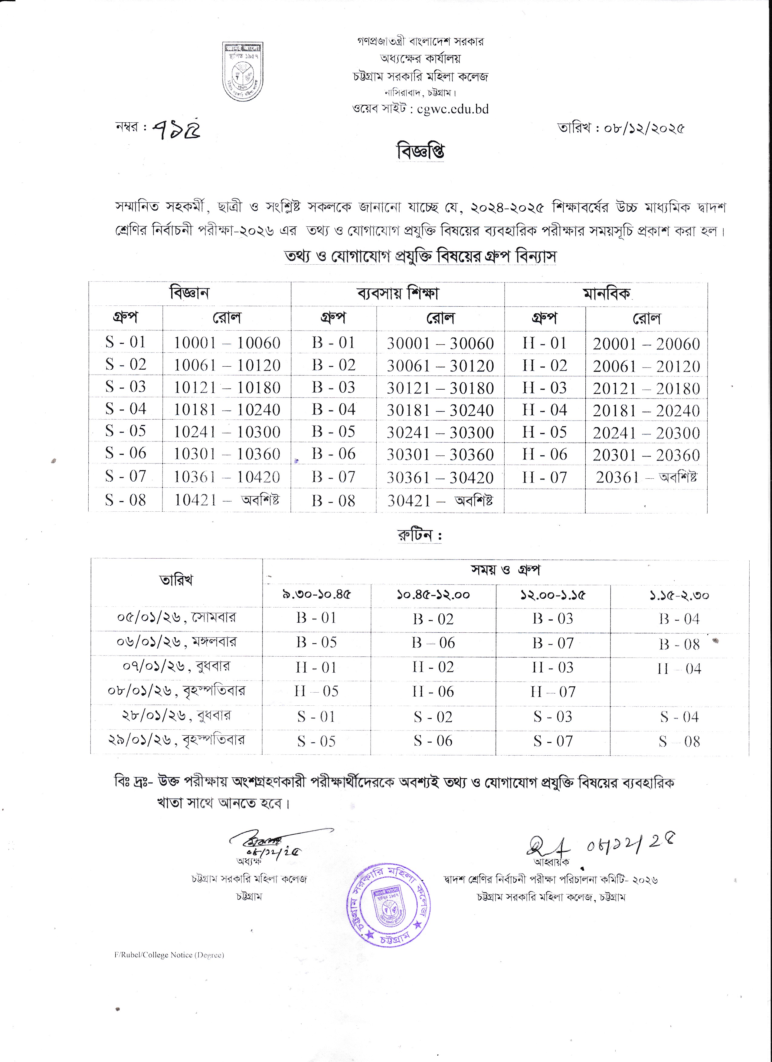 দ্বাদশ শ্রেণির নির্বাচনী পরীক্ষা-২০২৬ এর তথ্য ও যোগাযোগ প্রযুক্তি বিষয়ের ব্যবহারিক পরীক্ষার সময়সূচি প্রকাশ