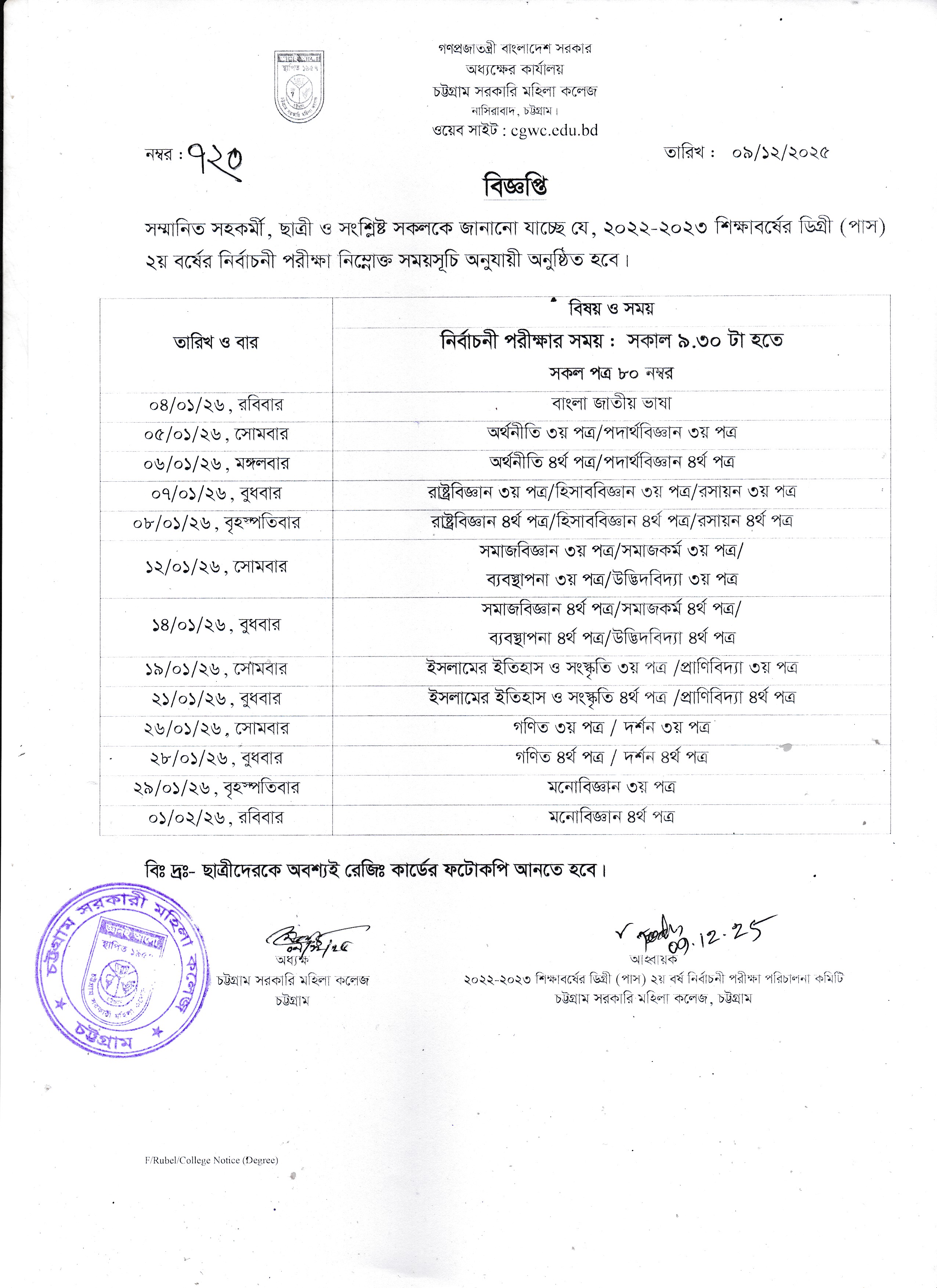 ডিগ্রি (পাস) পরীক্ষা-২০২৪ এর আগামী ১০/১২/২০২৫ তারিখের পরীক্ষার আসন বিন্যাস।