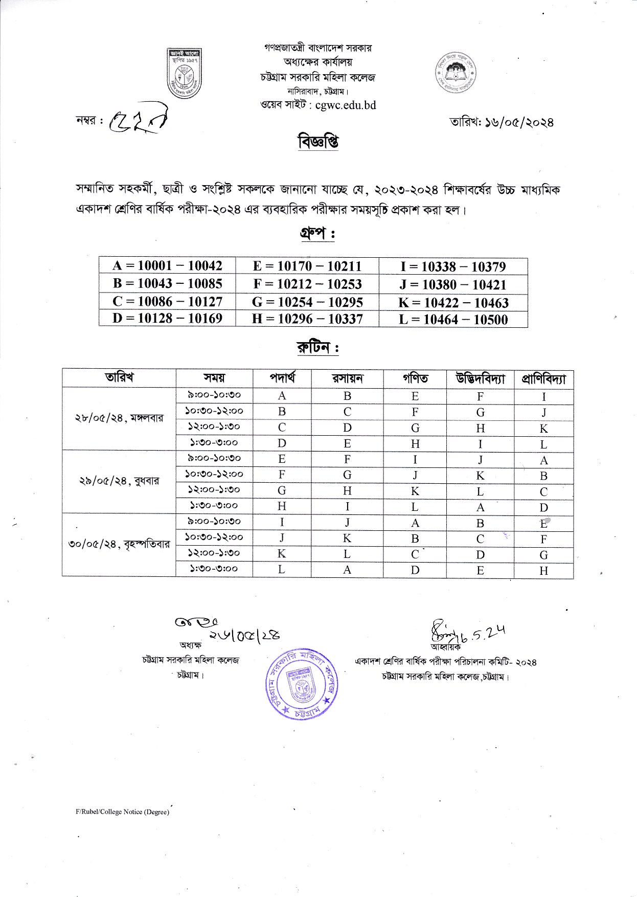 ২০২৩-২০২৪ শিক্ষাবর্ষে একাদশ শ্রেণির বার্ষিক পরীক্ষা-২০২৪ এর ব্যবহারিক পরীক্ষার সময়সূচি প্রকাশ (১৬/০৫/২০২৪)