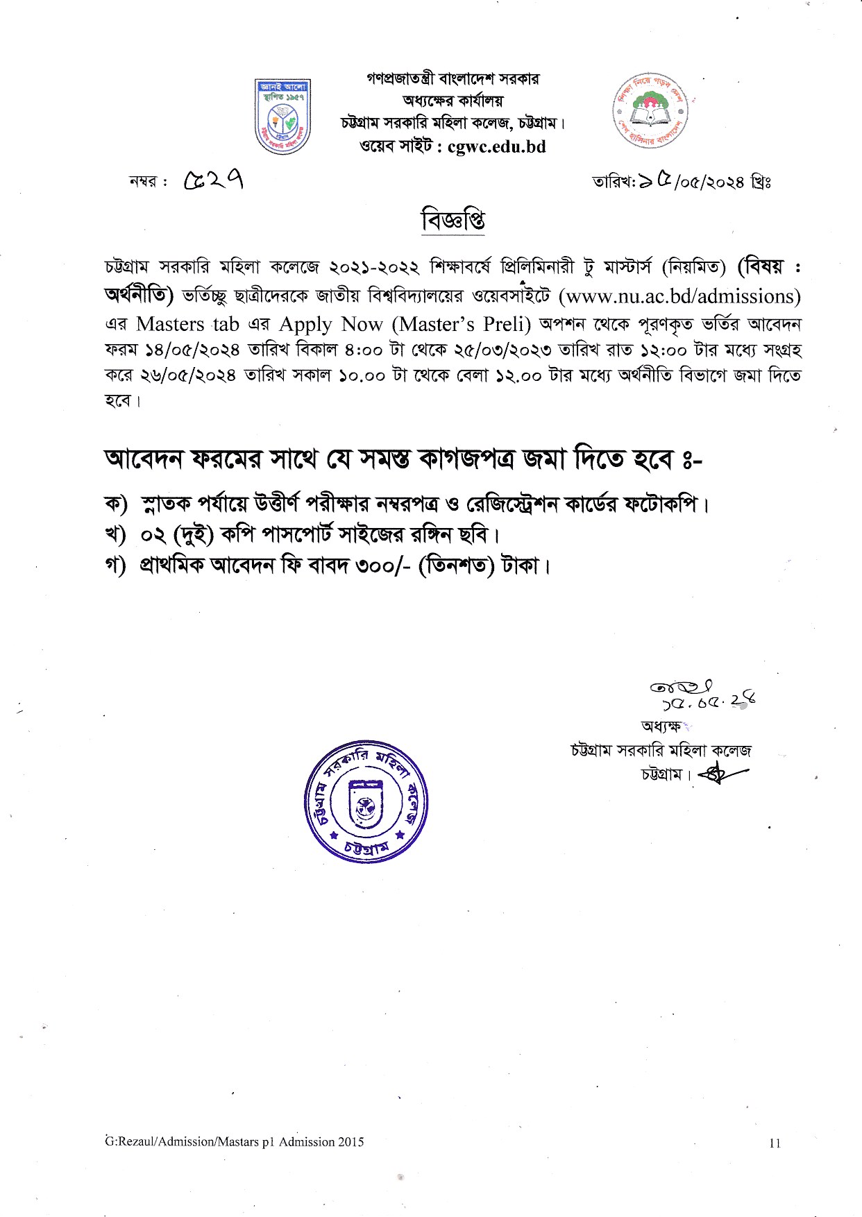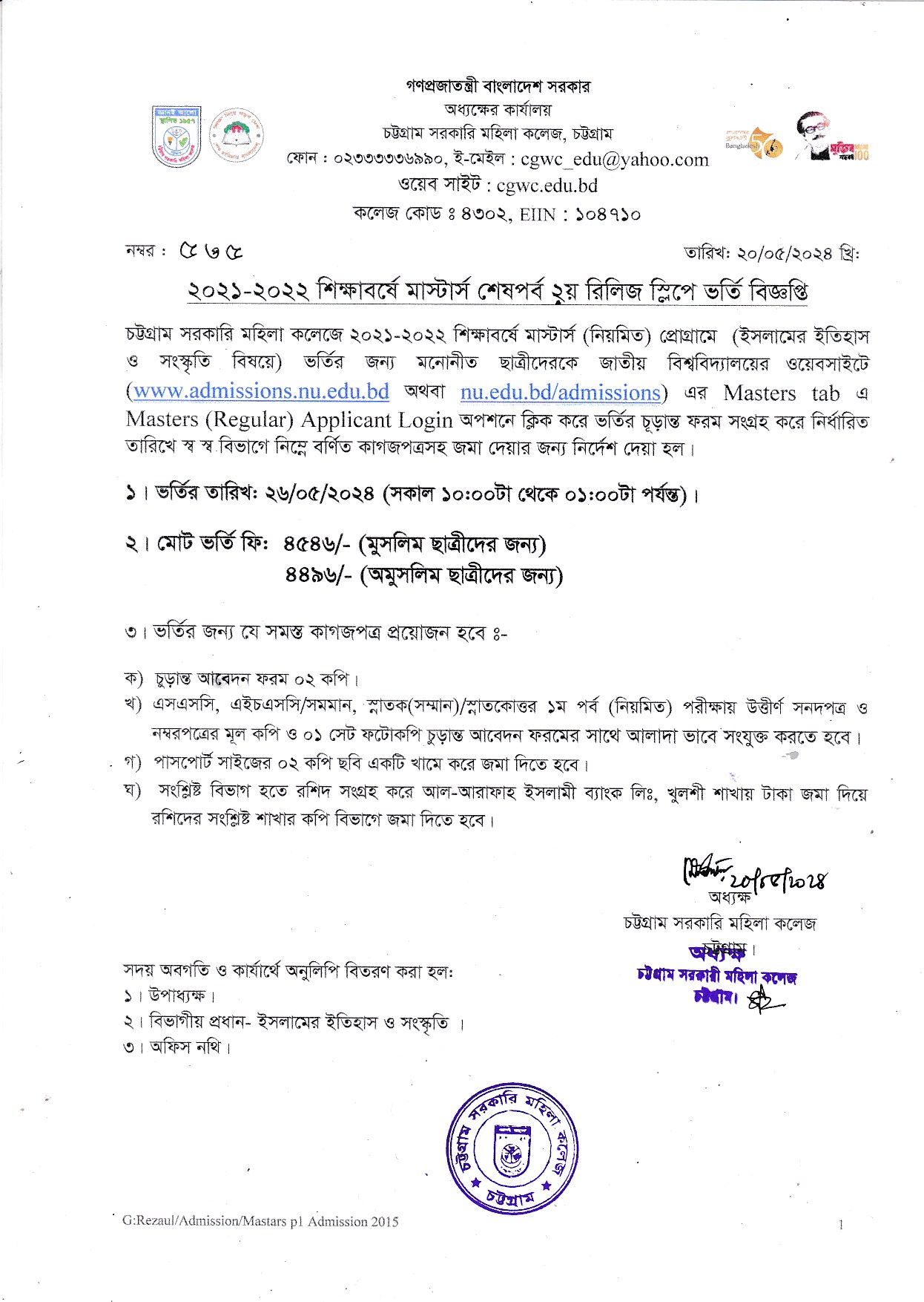 ২০২১-২০২২ শিক্ষাবর্ষে মাস্টার্স (নিয়মিত) কোর্সে ২য় রিলিজ স্লিপে বিজ্ঞপ্তি (২০/০৫/২০২৪)