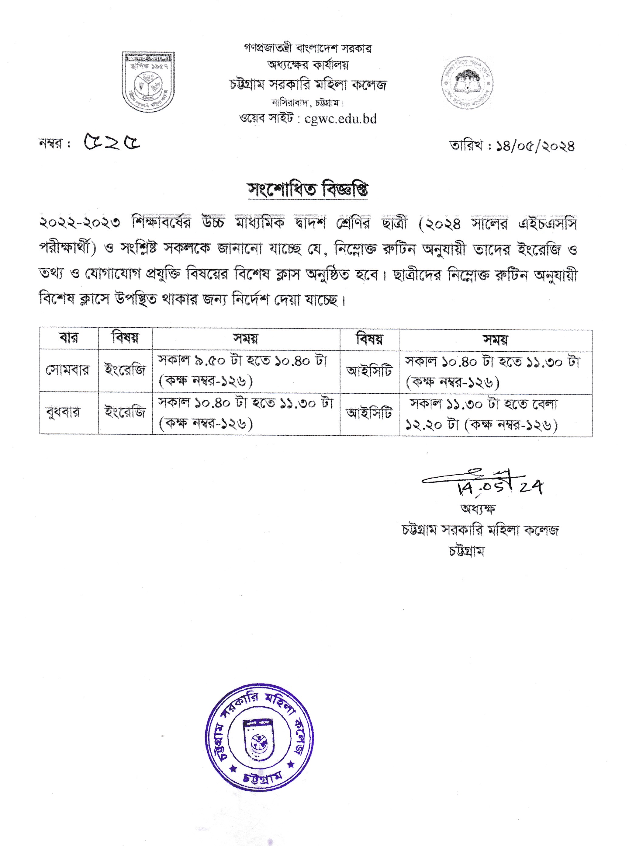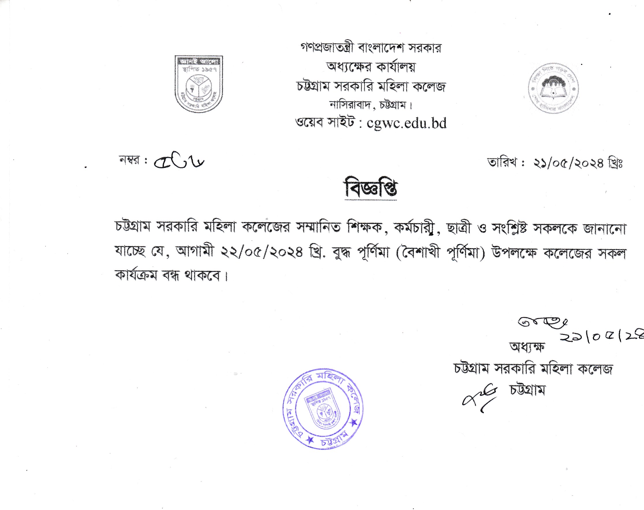 কলেজ বন্ধের বিজ্ঞপ্তি (২১/০৫/২০২৪)