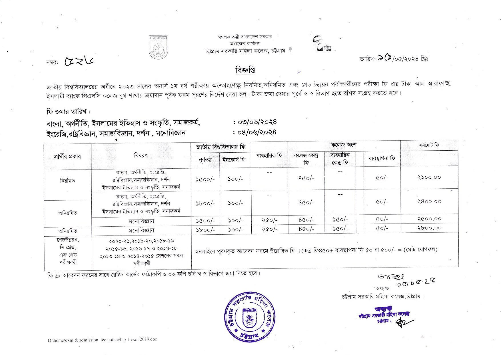 ২০২৩ সালের অনার্স ১ম বর্ষ পরীক্ষার ফরম পূরণ সংক্রান্ত বিজ্ঞপ্তি (১৫/০৫/২০২৪)