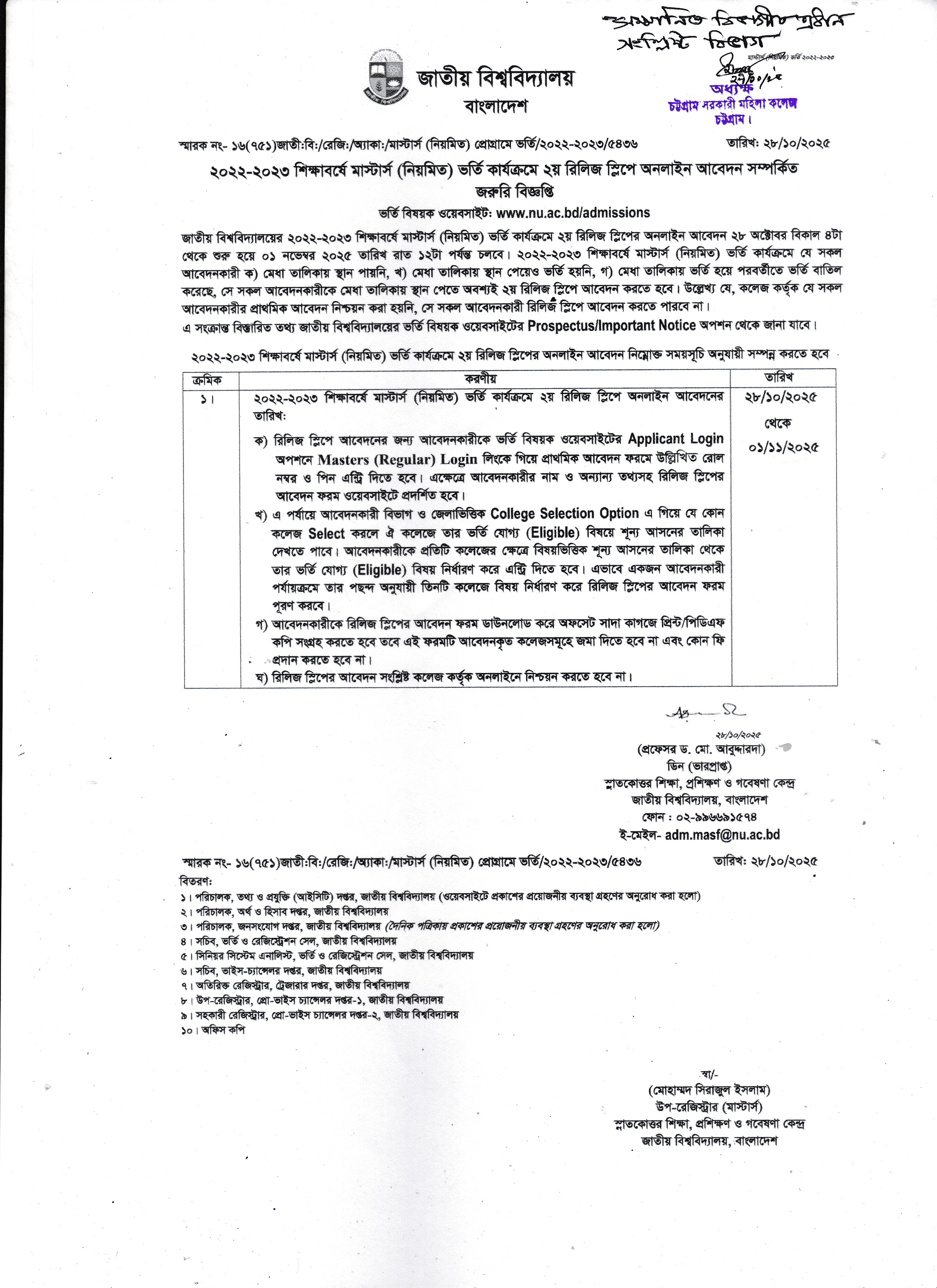 ২০২২-২০২৩ শিক্ষাবর্ষে মাস্টার্স শেষপর্বে ২য় রিলিজ স্লিপে আবেদন সংক্রান্ত বিজ্ঞপ্তি