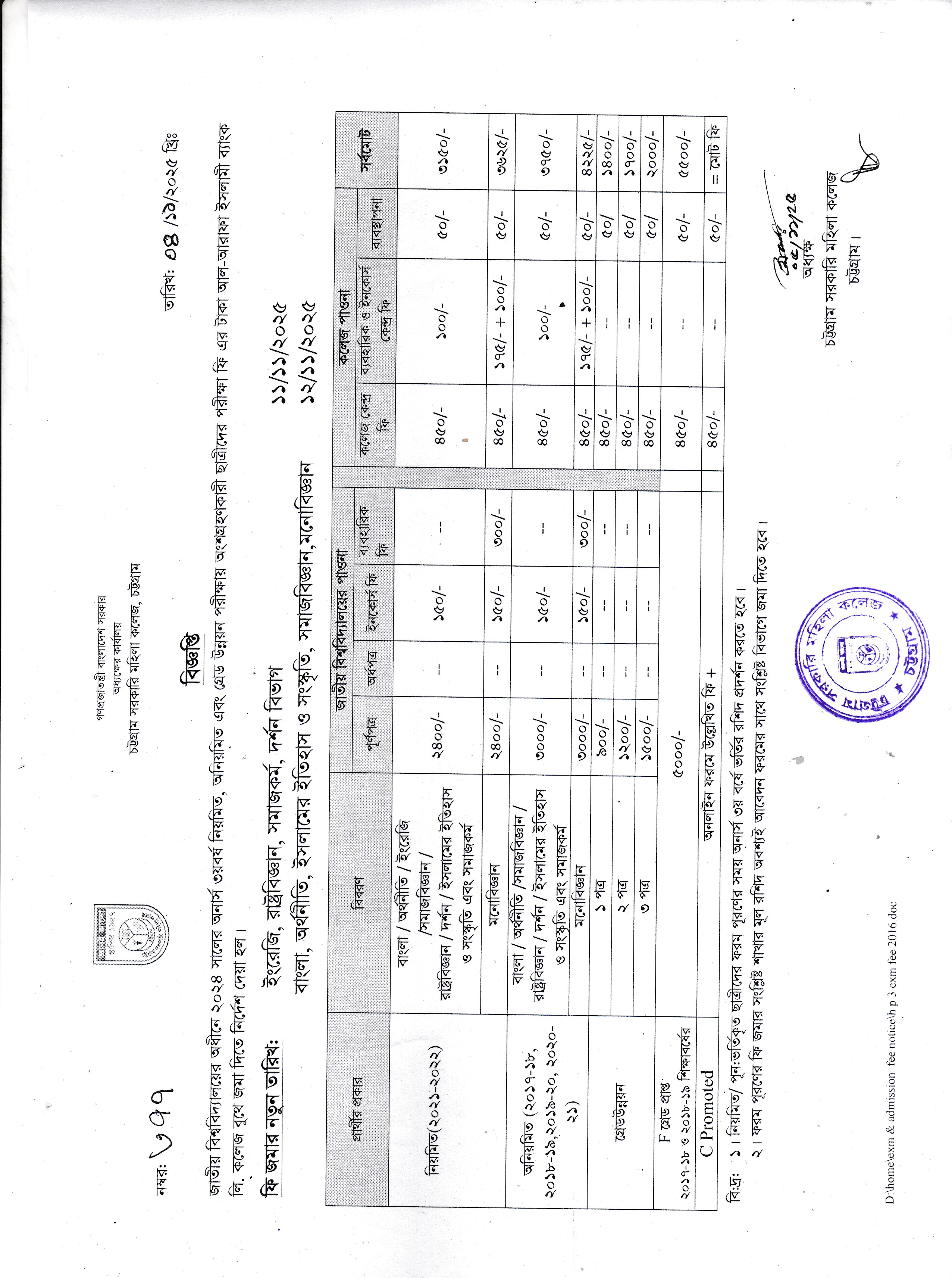 ২০২১-২০২২ সালের ডিগ্রি (পাস) ২য় বর্ষের ছাত্রীদের ৩য় বর্ষের ভর্তি ও সেশন ফি জমাদান সংক্রান্ত বিজ্ঞপ্তি