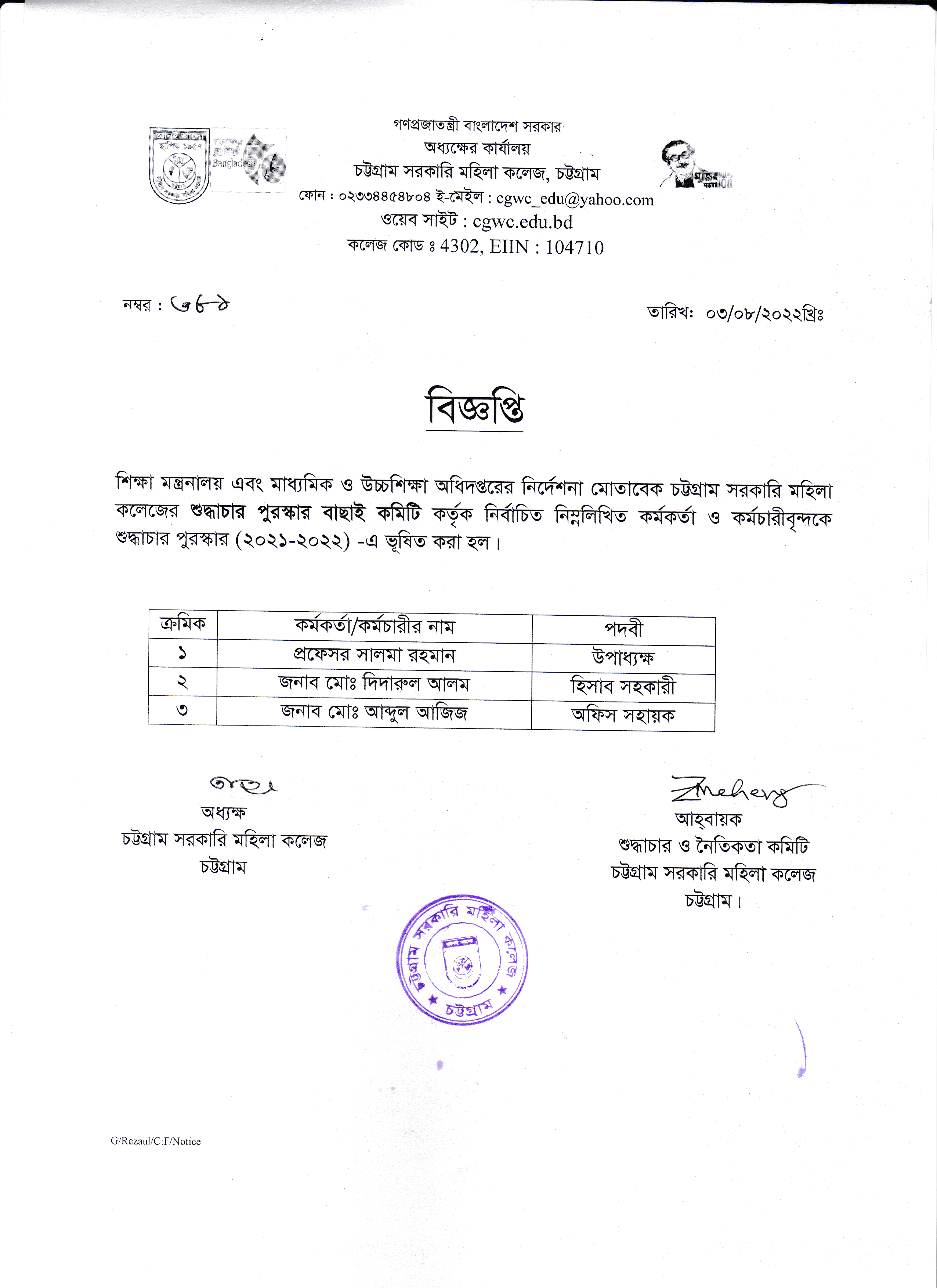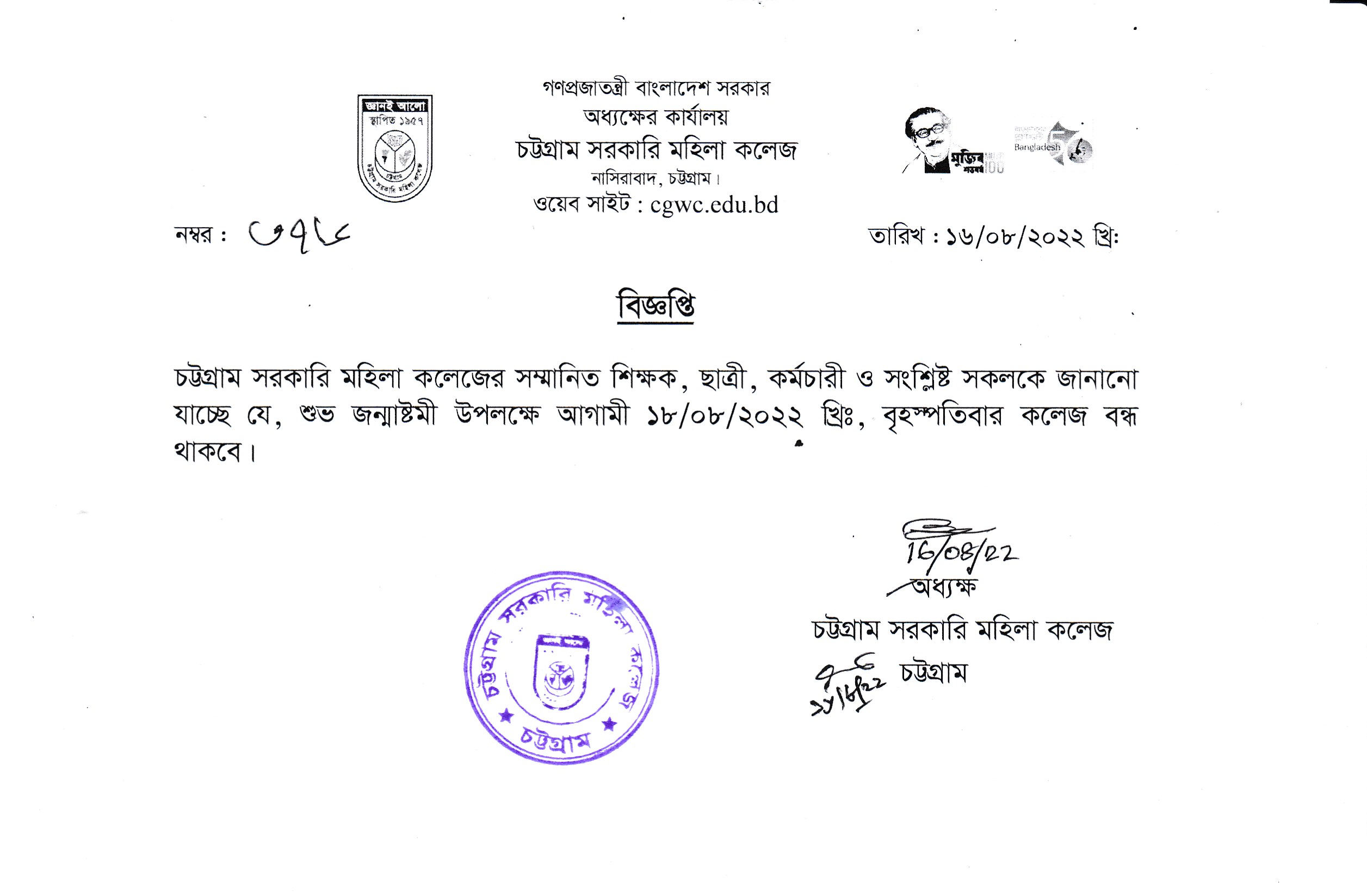 কলেজ বন্ধের বিজ্ঞপ্তি (১৭/০৮/২০২২)