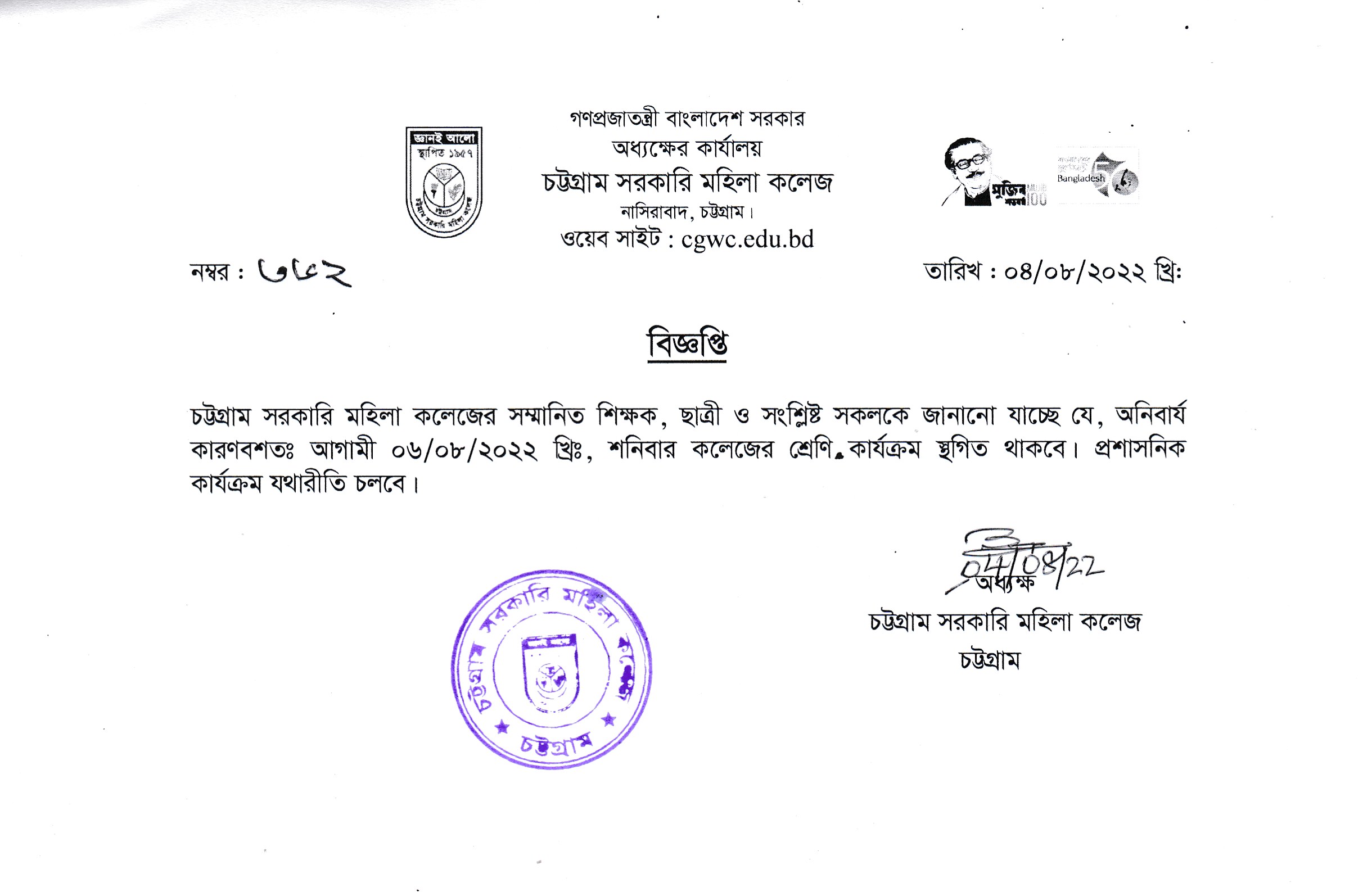 শ্রেণি কার্যক্রম স্থগিত সংক্রান্ত বিজ্ঞপ্তি (০৪/০৮/২০২২)