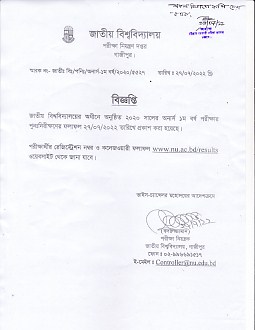 ২০২০ সালের অনার্স ১ম বর্ষ চূড়ান্ত পরীক্ষার পুনঃনিরীক্ষণের ফলাফল প্রকাশ (২৮/০৭/২০২২)