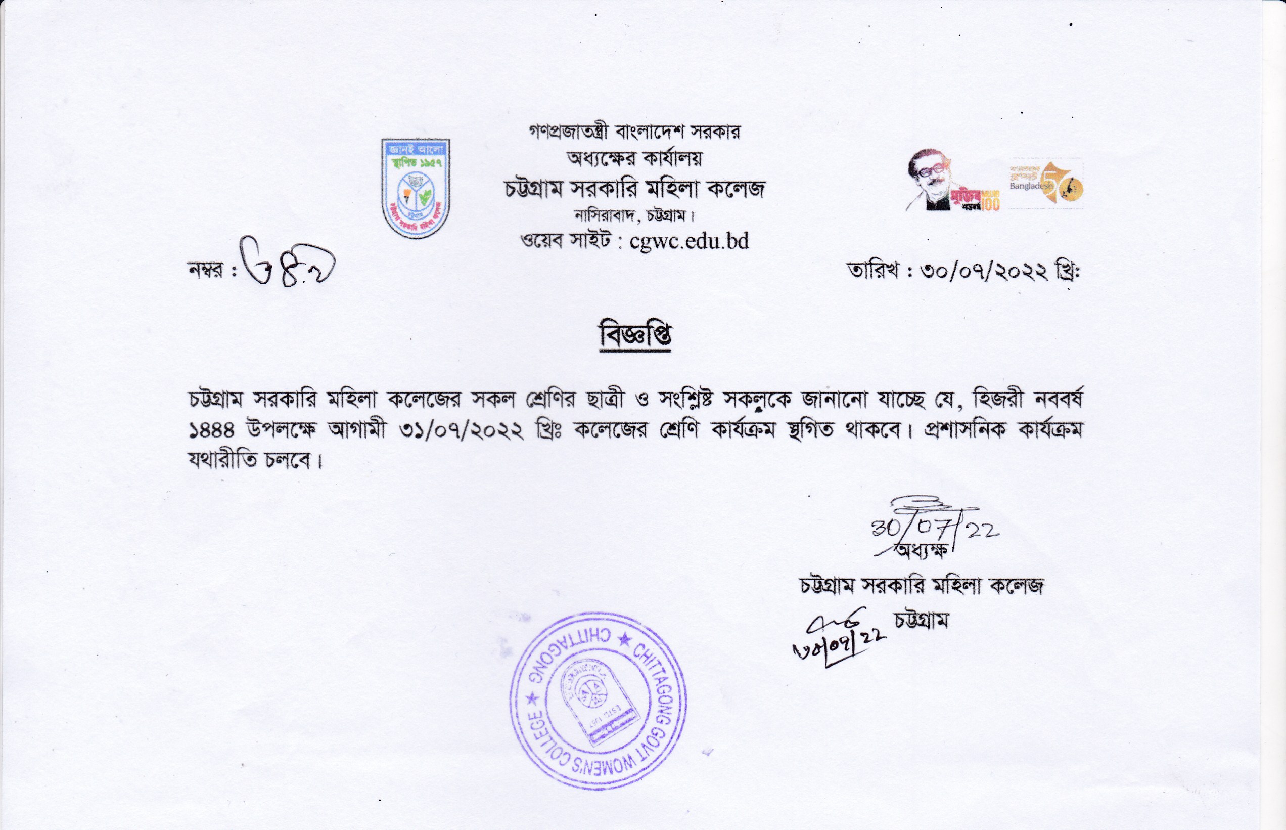 শ্রেণি কার্যক্রম স্থগিত সংক্রান্ত বিজ্ঞপ্তি (30/07/2022)