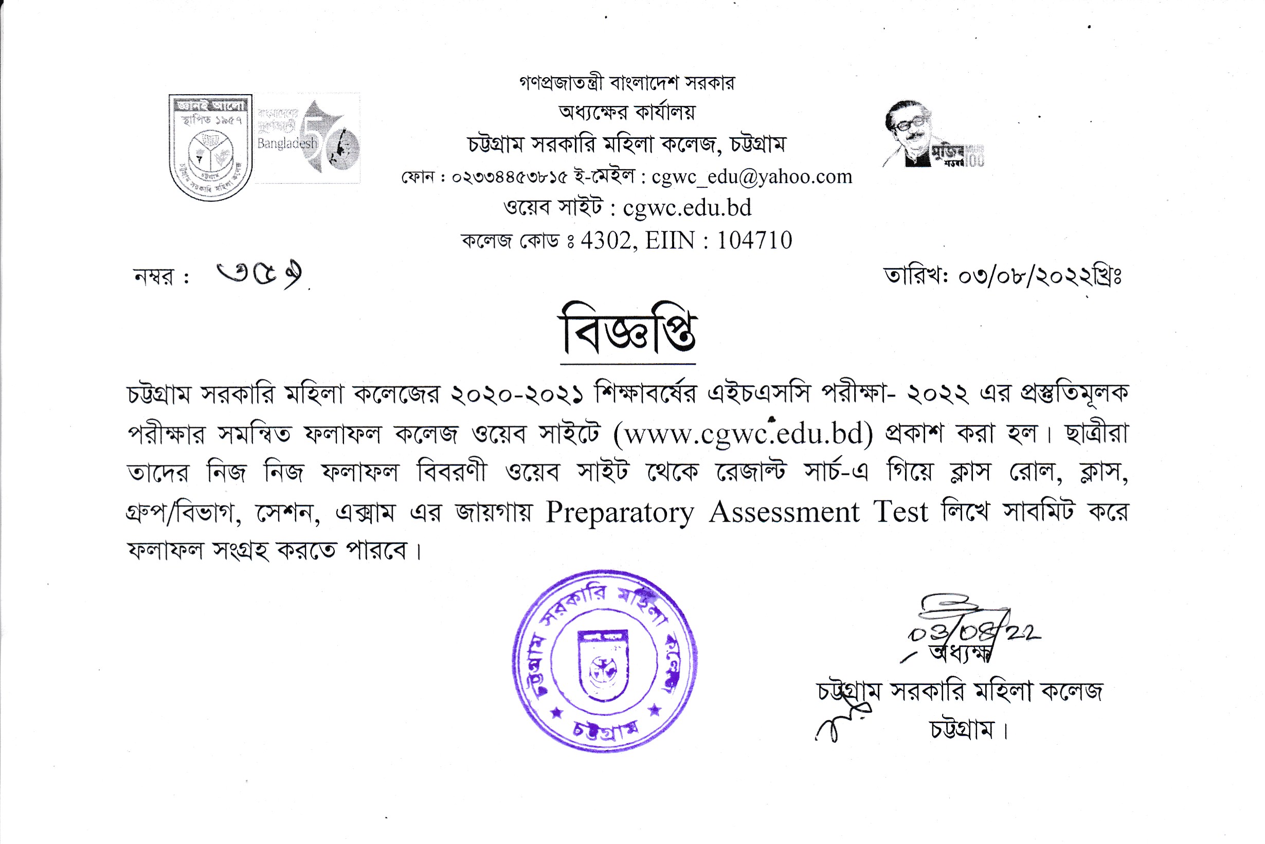 ২০২২ সালের উচ্চ মাধ্যমিক পরীক্ষার্থীদের প্রস্তুতিমূলক পরীক্ষার ফলাফল প্রকাশ (০৪/০৮/২০২২)