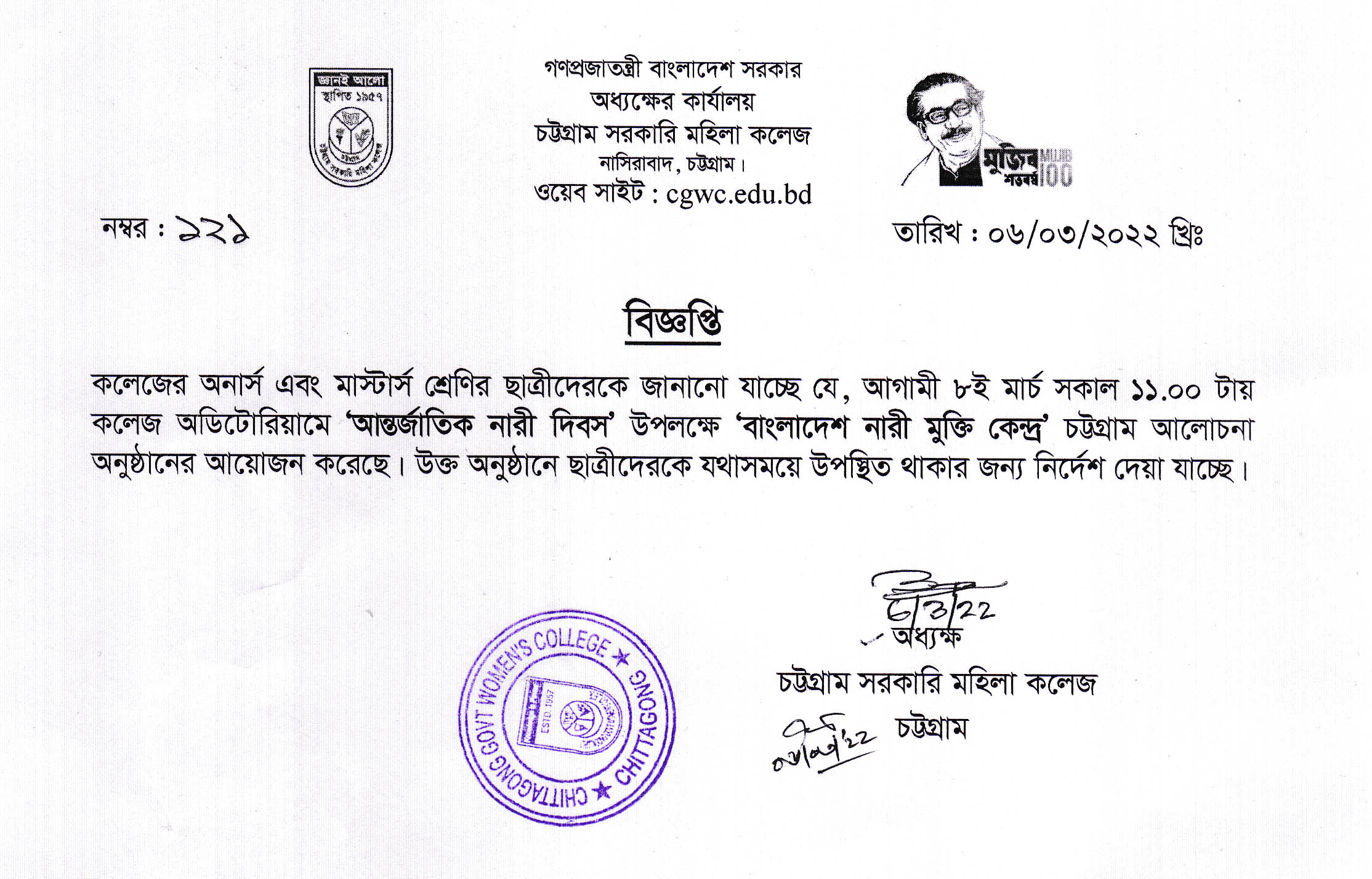 ঐতিহাসিক ৭ই মার্চ-২০২২ উপলক্ষে আলোচনা সভার বিজ্ঞপ্তি (০৫/০৩/২০২২০)
