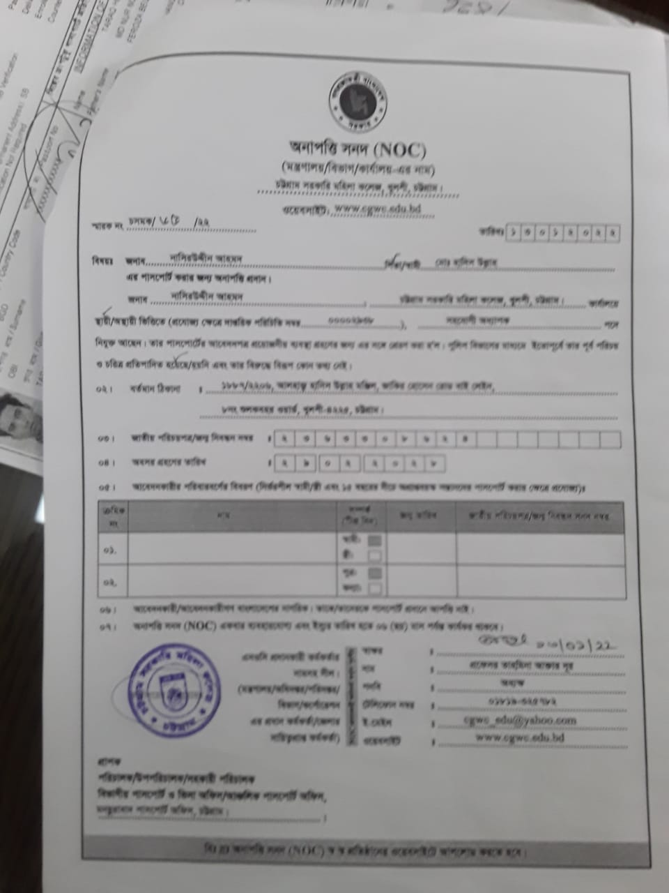 জনাব নাসির উদ্দীন আহমদ চৌধুরী, সহযোগী অধ্যাপক, রাষ্ট্রবিজ্ঞান বিভাগ এর সংশোধিত NOC ফরম।