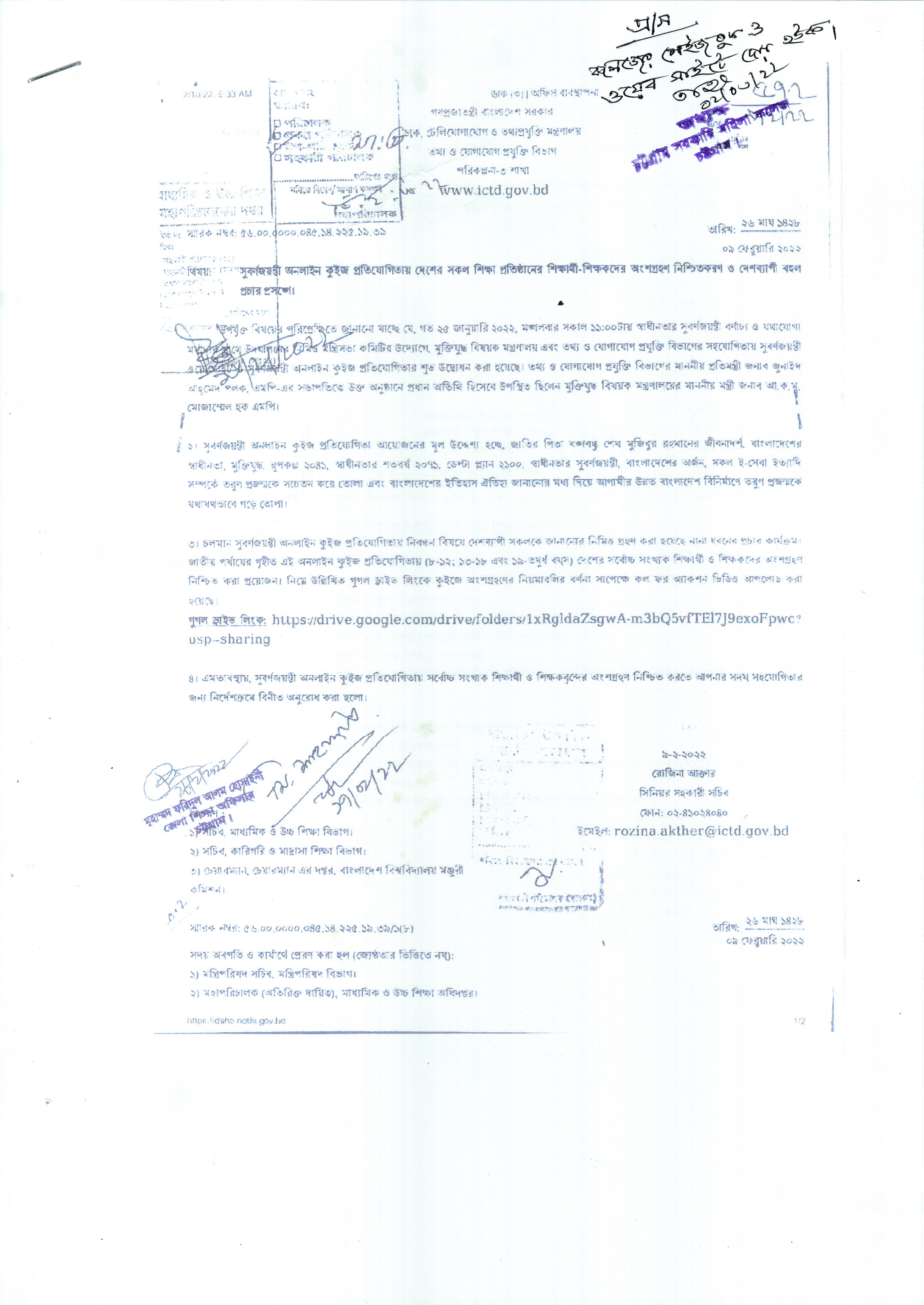 সুবর্ণজয়ন্তী অনলাইন কুইজ প্রতিযোগিতার বিজ্ঞপ্তি (০১/০৩/২০২২)