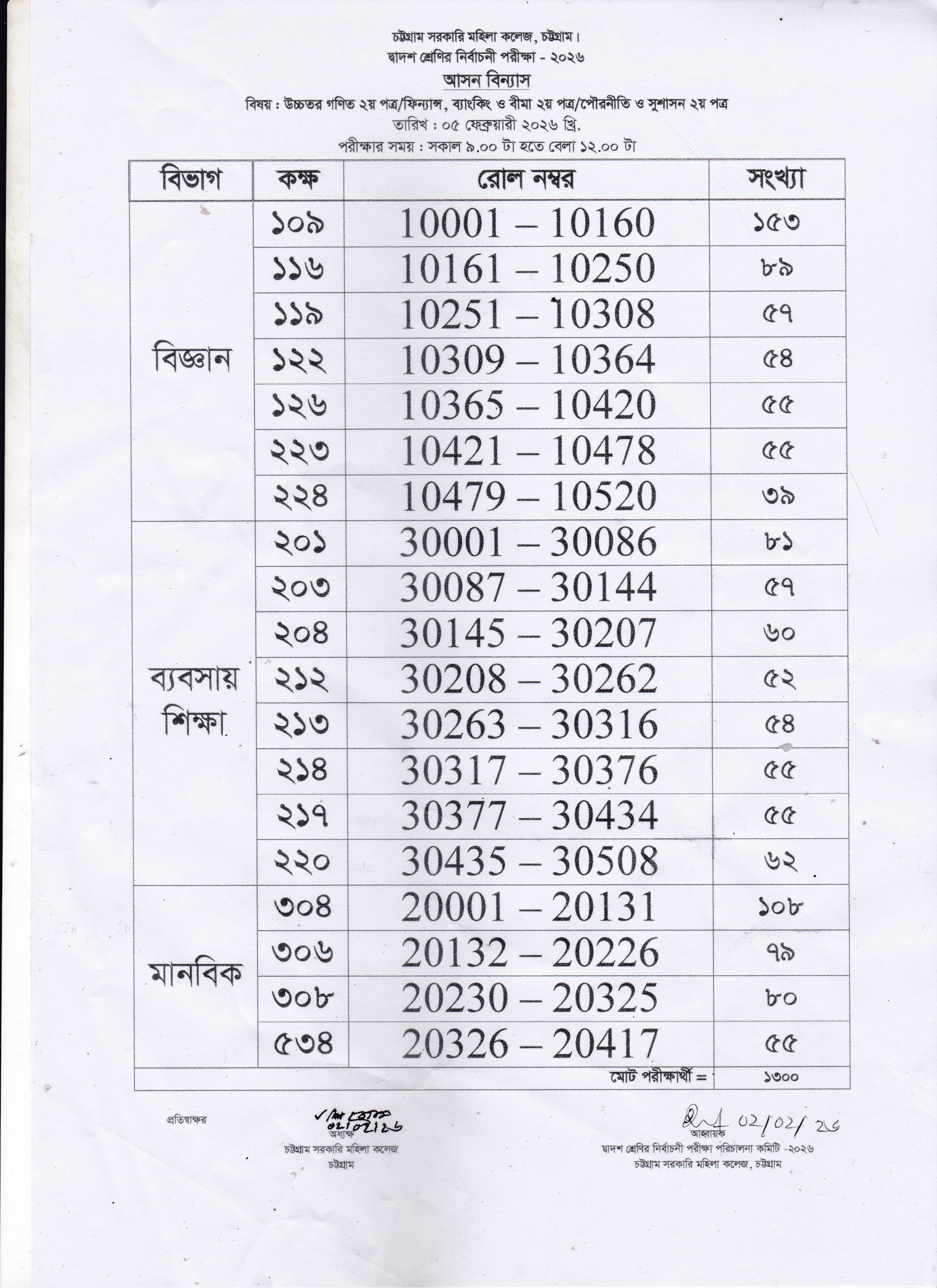 দ্বাদশ শ্রেণির নির্বাচনী পরীক্ষা-২০২৬ এর আগামী ০৫/০২/২০২৬ তারিখের আসন বিন্যাস